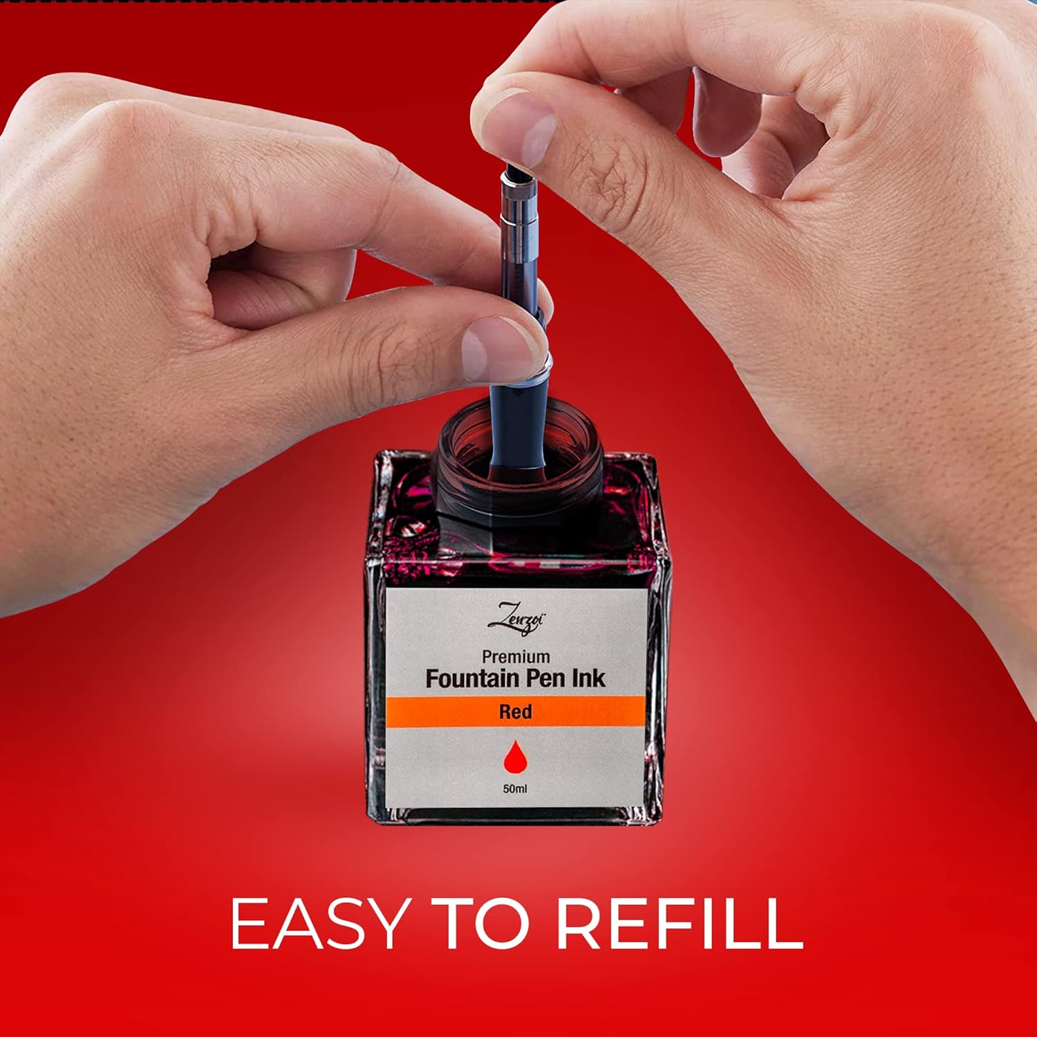 ZenZoi Fountain Pen Ink Bottle 50ml | Premium Designed Bottled Ink for Fountain Pens – Suitable for Calligraphy and All Branded Pens | Quick Drying and Smooth Flow Writing Experience (Red)