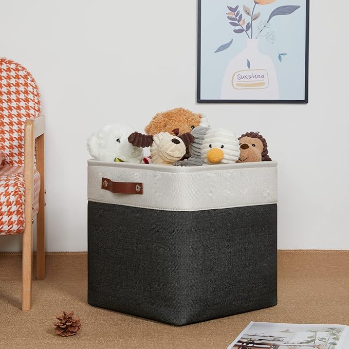 - 【Easy to Clean】These cube storage baskets are made from a sturdy fabric that seems very stain resistant. If they did get a stain, it is very easy to wash it off with a little bit of soap and water.