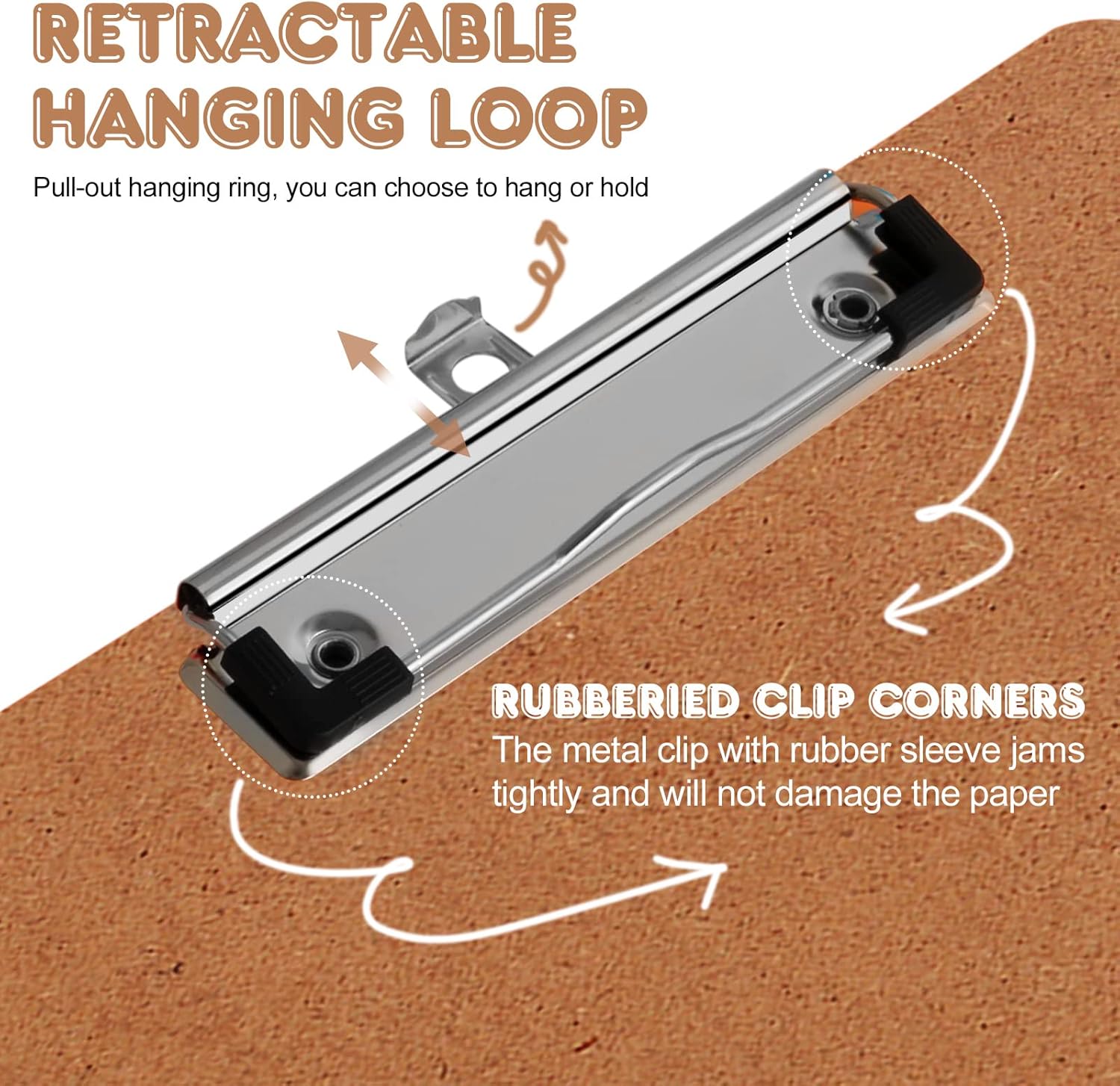 - RETRACTABLE HANGING LOOP: The clipboards have a built-in hanging hole, which can help you place your documents randomly. And it can be stowed away when not needed.
