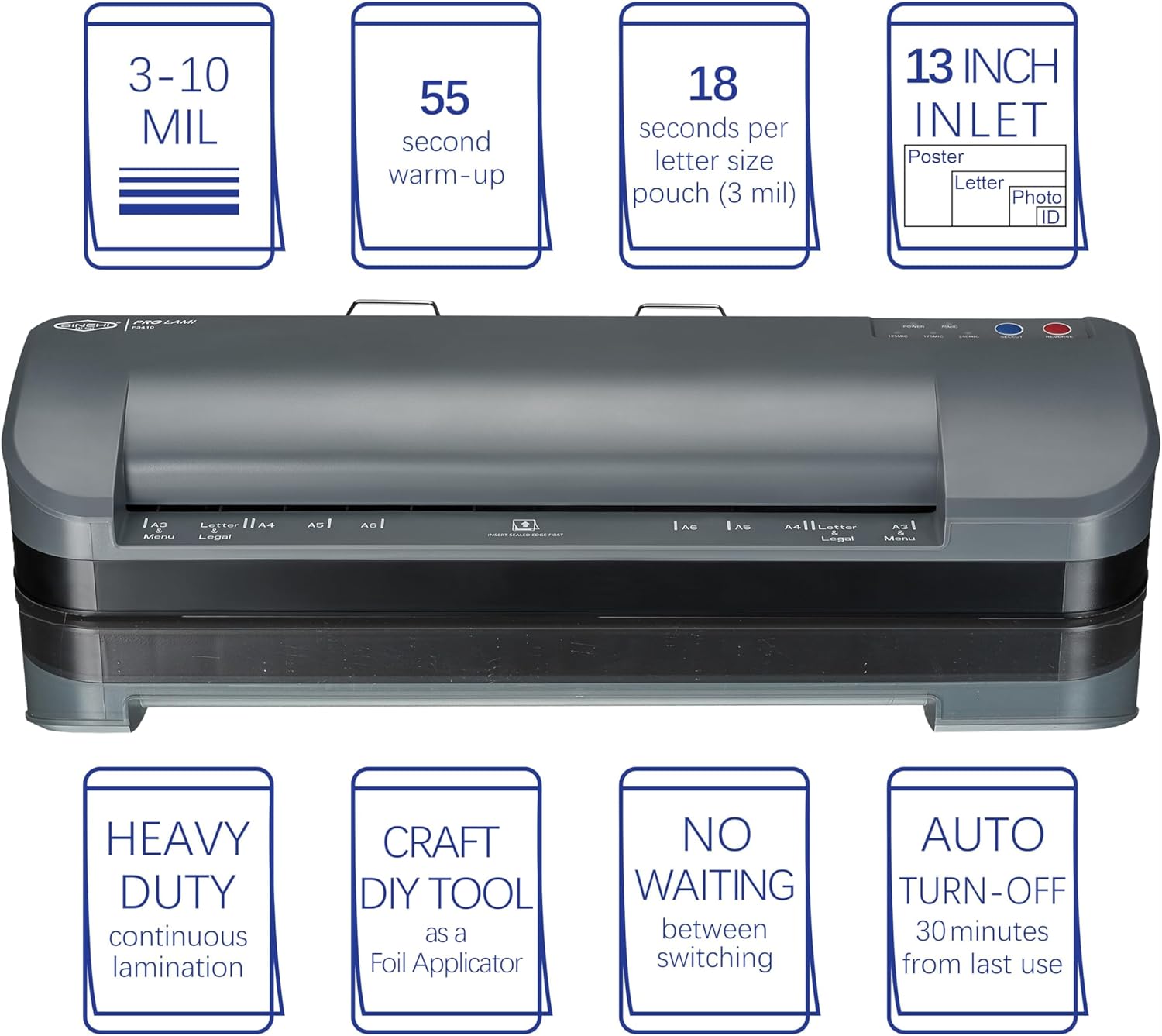 - 【High Productivity】Laminates 10 letter-size sheets in just 4 minutes! With a fast 55-second warm-up and speeds up to 40 inches per minute, it's perfect for high-efficiency tasks in small businesses, busy offices, classrooms, and crafting spaces.