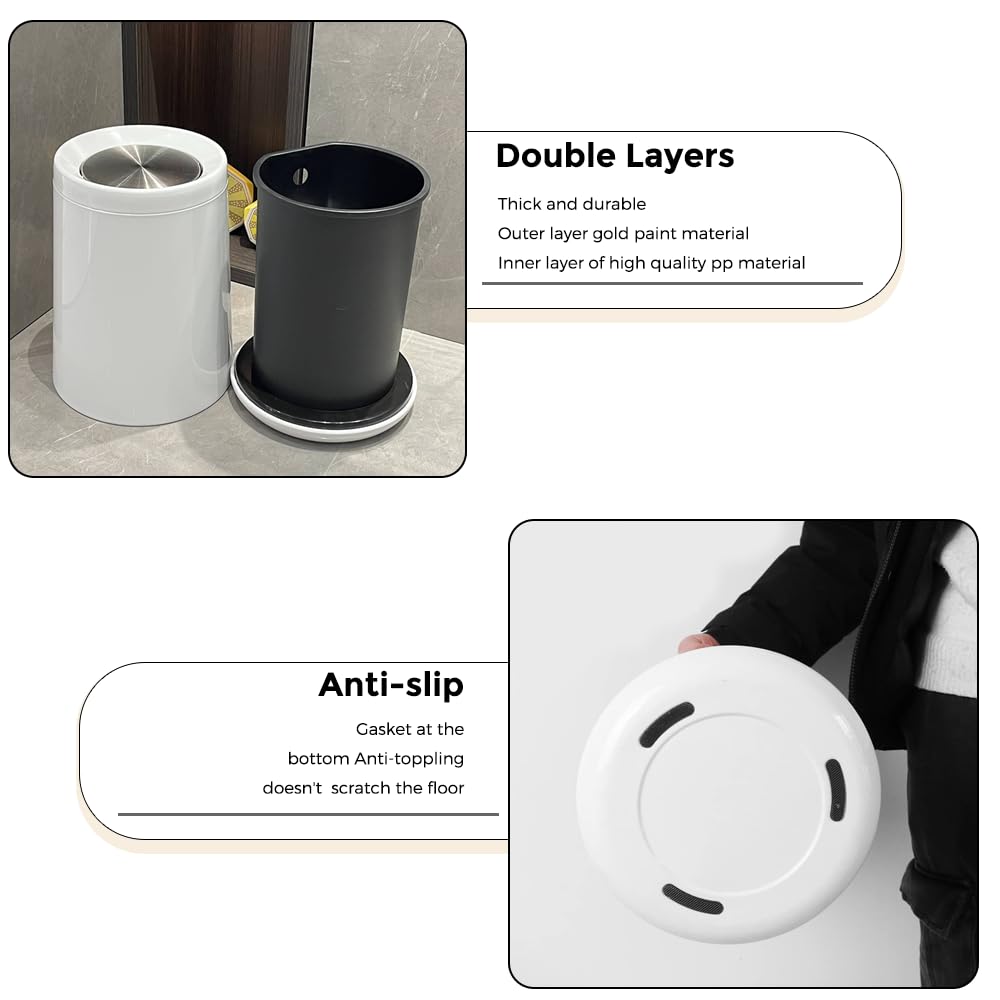 - 【Airtight and hygienic】 --- the cover is designed with a swing cover, which can effectively seal the smell of garbage and keep it clean and hygienic