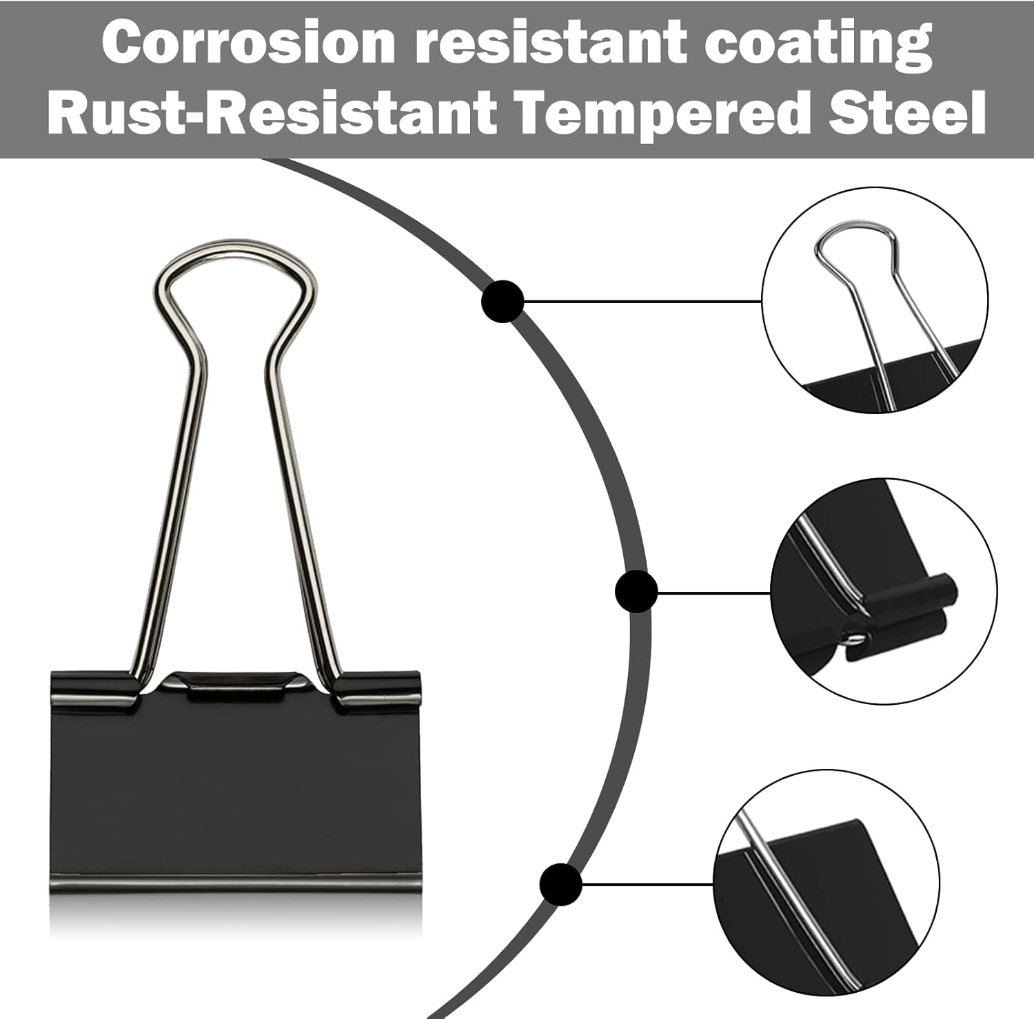 2 Inch Extra Large Binder Clips 48 Pack, Jumbo Paper Clips, Big Paper Clamps, Binder Clips Large Size for Home, School and Office Supplies