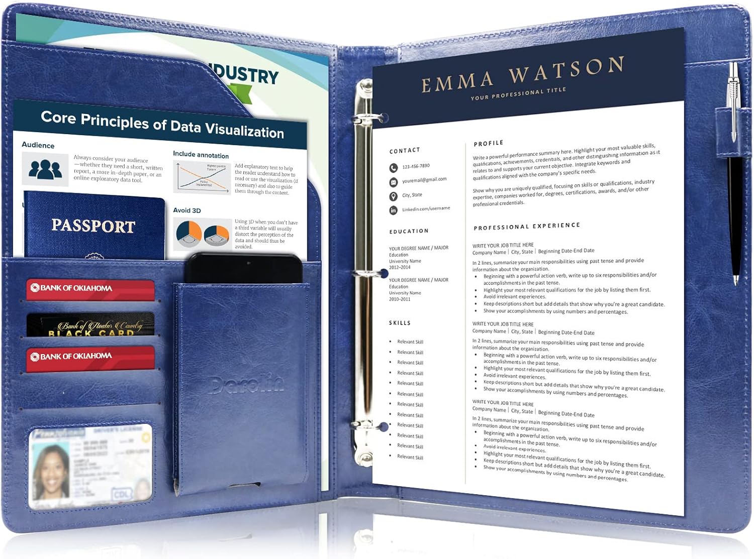 Darolin Business/Resume Portfolio Folder Binder, Padfolio with 3 Ring Binder, Interview/Conference/Legal Document Portfolio Organizer, Leather Portfolio Padfolio for Women/Men-BL