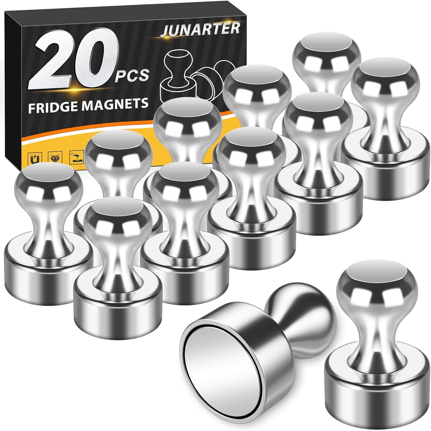 - 🛒GREAT VALUE FOR PRICE: There are 20 pack magnetic push pins in the plastic set, and each magnetic push pins is smooth but easy to grasp, which are powerful and of great value. Due to strong magnetism, the fridge magnets are best for DIY magnetic walls, guestbooks, recipes, and memos.