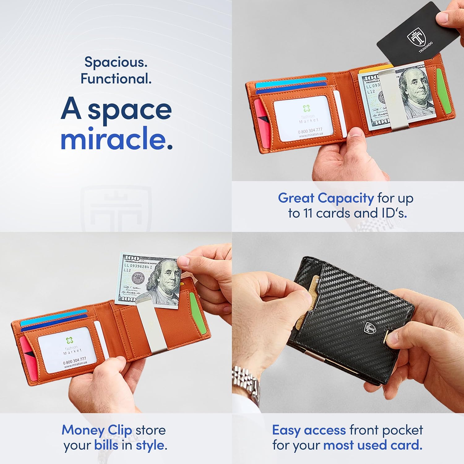 - ππ‘π§πππ₯ππ§ππ π π’π‘ππ¬ ππππ£ - The metal money clip allows you to clip several bills inside your wallet