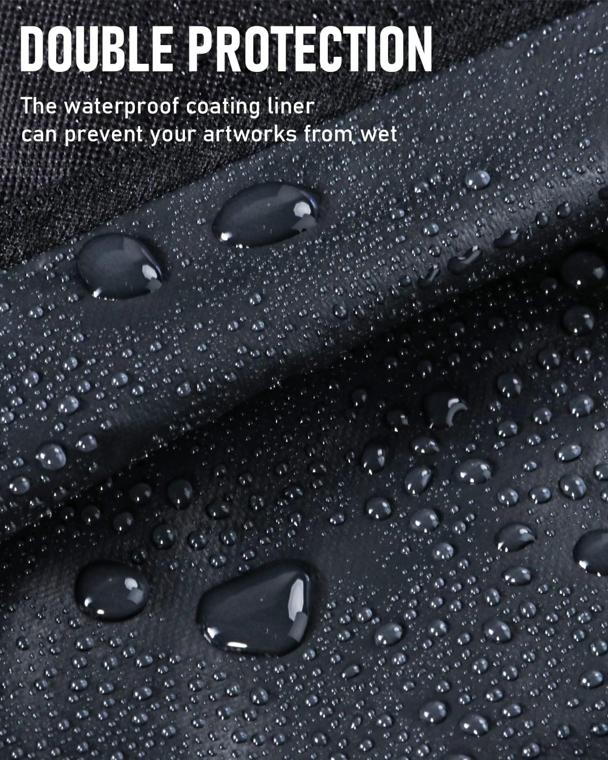 - Double Water-Proof Design: Nicpro Art Portfolio Bag is not only made of water-proof fabric, but also have an interior water-repellent coating. This diamond art bags can keep artwork from water damage, making it suitable for outdoor use or during transportation in unpredictable weather conditions. This ensures that paintings, sketches, or other artwork remain pristine and unaffected by moisture, even in rainy environments