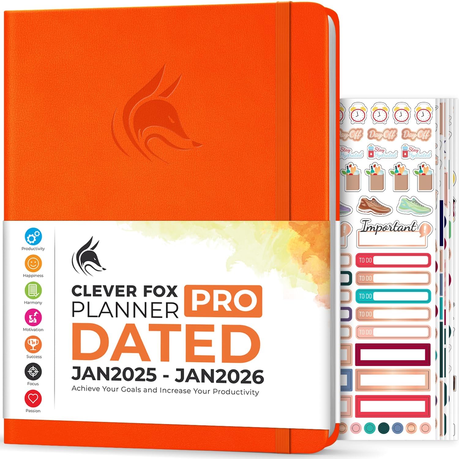 Clever Fox Planner PRO Dated (Jan 2025–Jan 2026) Weekly & Monthly Life Planner to Increase Productivity, Time Management and Hit Your Goals – Organizer, Gratitude Journal – A4 Size (Orange)