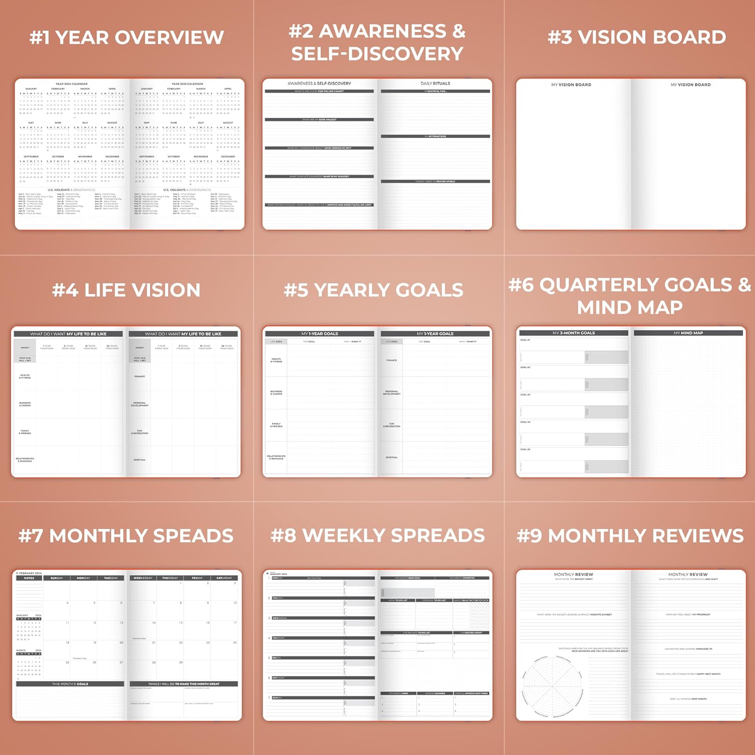 - CREATE A VISION FOR YOUR FUTURE, SET GOALS & START PLANNING – This goal-setting planner 2025 will help you create a vision for your life, define your global goals, and incorporate them into your agenda.