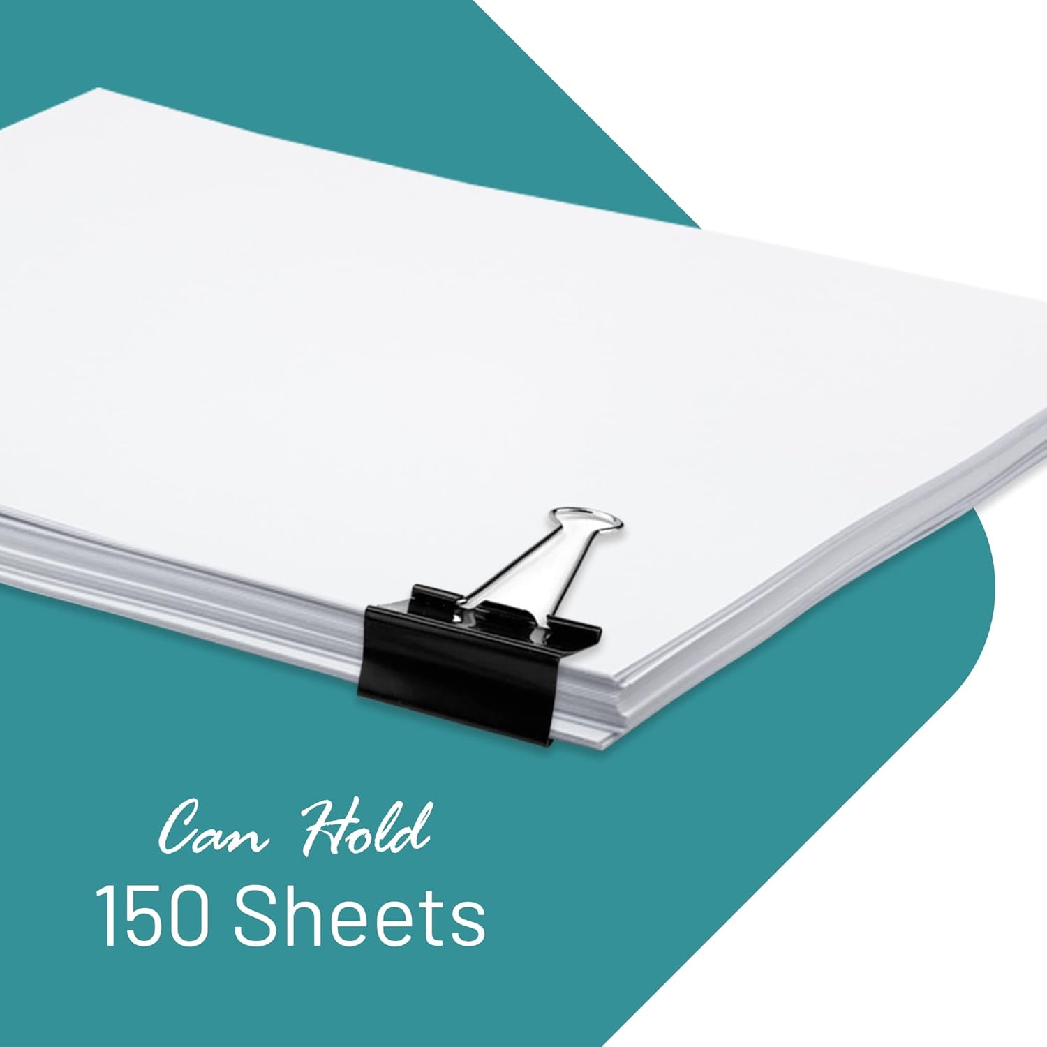 - Includes 24 medium binder clips. 1.25” – holds 150 sheets of paper.