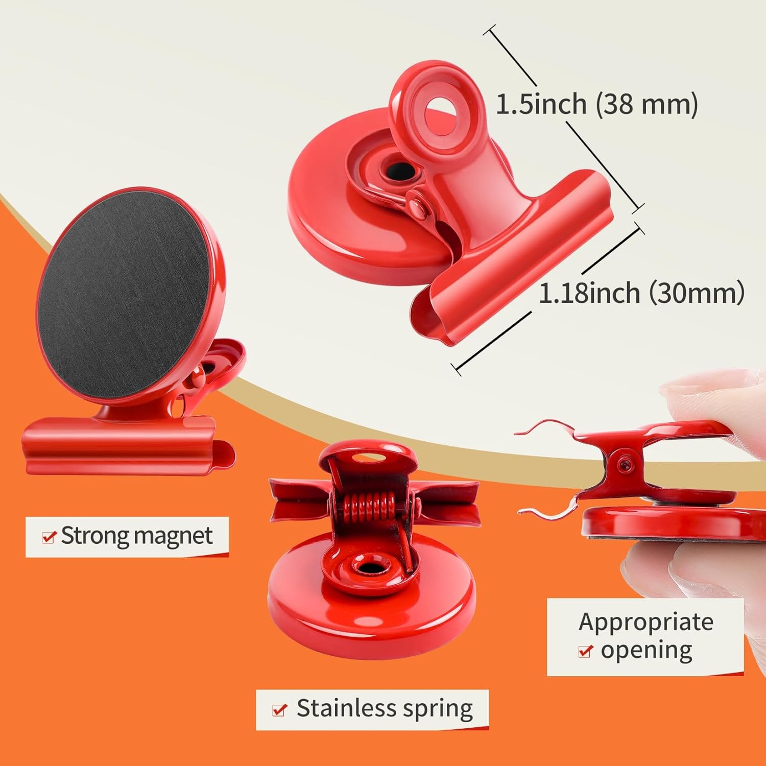 - 【Heavy Duty Metal Clips】Made of high-quality metal with color-printed, rust resistance, it is equipped with a magnet that strong enough to hold 25 sheets of A4 paper together on a metal surface like a dry erase board, fridge.