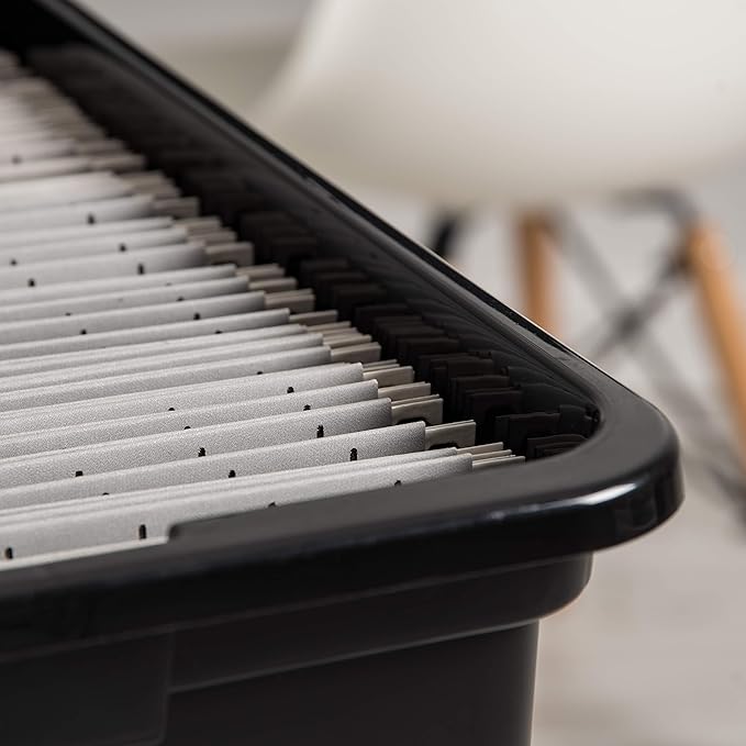 IRIS USA File Box File Organizer Plastic File Box for Letter/Legal File, BPA-Free Plastic Storage Bin Tote Organizer with Durable and Secure Latching Lid, Stackable and Nestable, Black 35 Qt. 1Pack