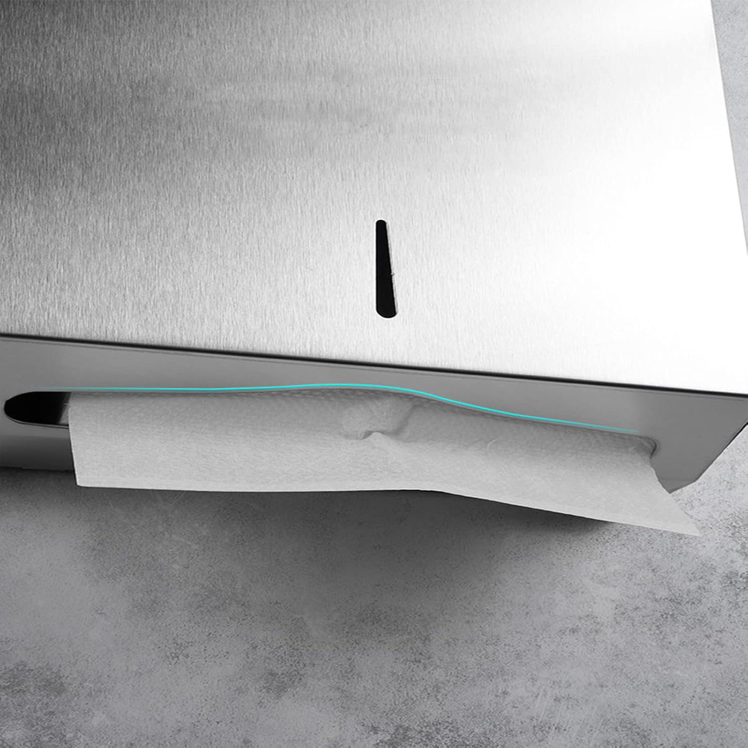 - 【Brushed Stainless Steel】 Made of 304-grade stainless steel, the paper towel dispenser is durable, easy to clean, and rust-proof. The brushed finish process gives it a sleek, modern look that will instantly elevate any bathroom. The polished edges and corners ensure that both hands and tissues are protected from any scratches.