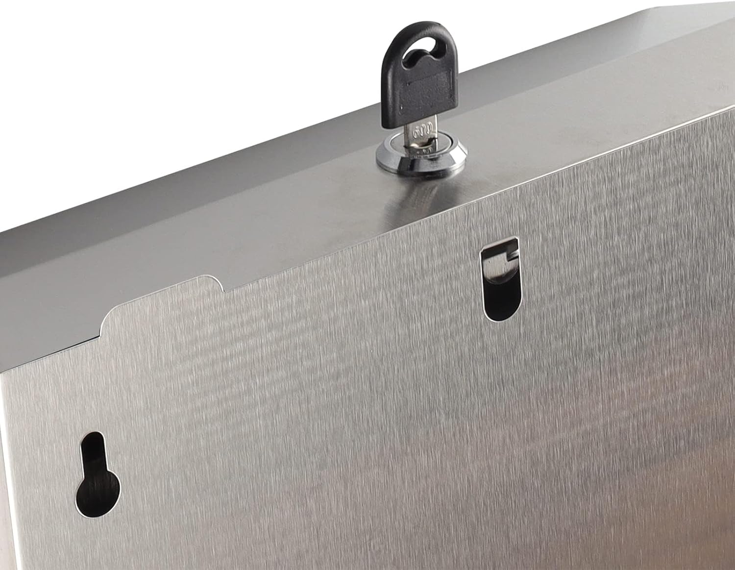- 【Locking Key Design】 This paper towel dispenser wall mount features a lock design to ensure minimal pilferage and waste reduction. It is an ideal accessory for high-traffic public places, including restrooms, schools, banks, hotels, shopping malls, bars, food service facilities, and medical facilities.