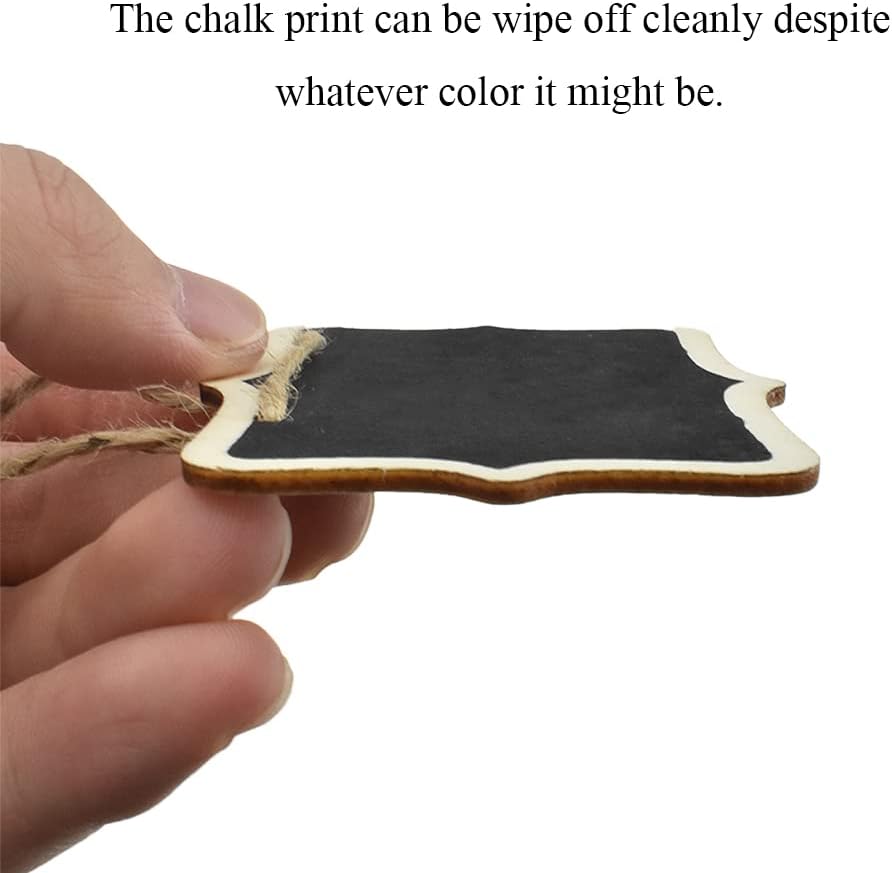 - Multi-Function:These small signs are perfect to hang on bottles to store plants,honey,vanilla,etc.So easy to write words on these little chalkboards and slip it over a bottle.And they can hang anywhere!These would look cute at weddings,bridal showers,baby showers,birthday parties,and more!These would also make great gifts for people who love to host parties or decorate,nice labels also!