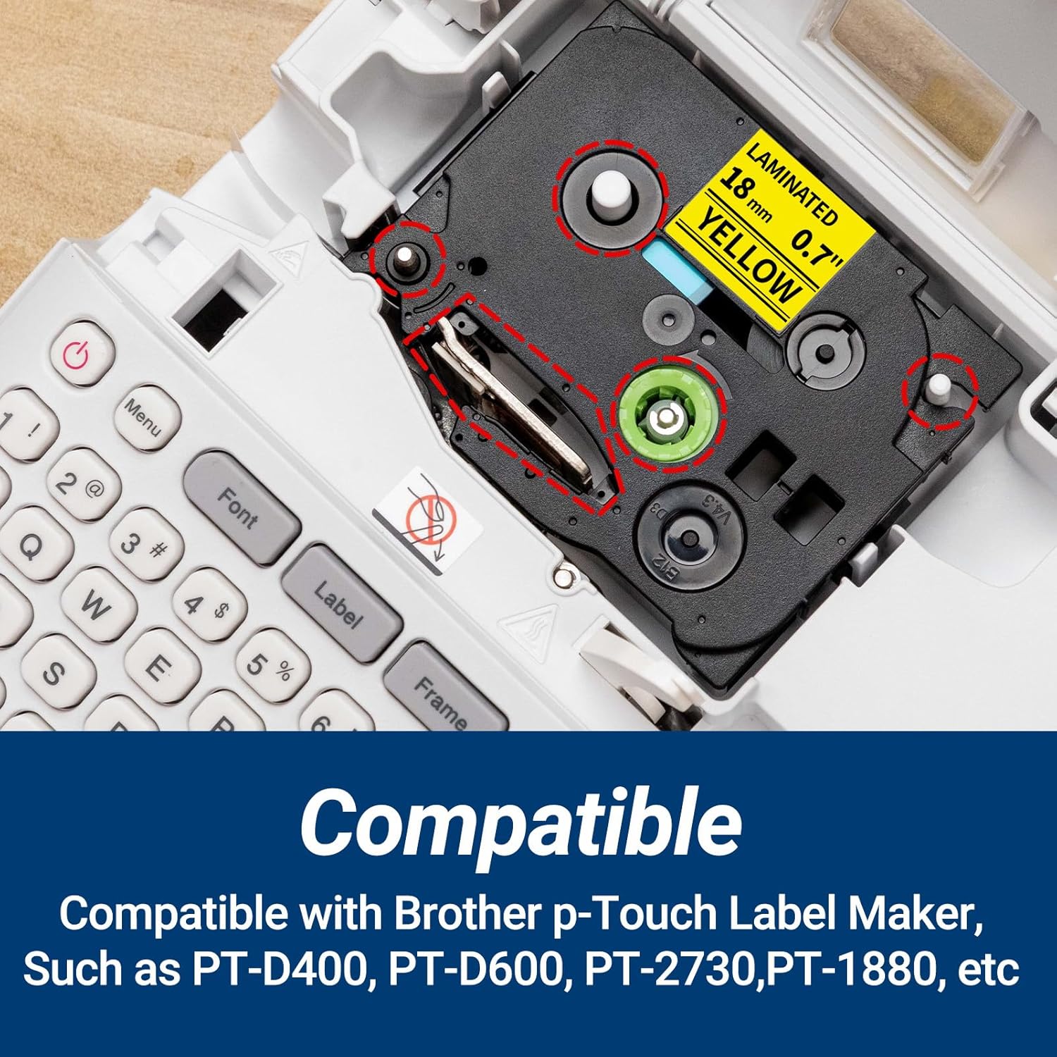 - Compatible with Brother P Touch label makers that use up to 18mm 0.7 inch TZe label tapes yellow: PT-D400, PT-D600, PT-D400AD, PT-D400VP, PT-D600VP, PT-P710BT, PT-P750W, PT-E550W, PT-P700, PT-2730VP, PT-H500LI, PT-2730, PT-2430PC, PT-D450, PT-1880, PT-1830, PT-1890SC, PT-2300, PT-300, PT-310, PT-E300, PT-E300VP, PT-E500, PT-E550W, PT-520, PT-530, PT-540, PT-550, PT-1400, PT-1500, PT-1500PC, PT-1600, PT-2110, PT-2200, PT-2210, PT-2300, PT-2310, PT-2400, PT-9700PC and more