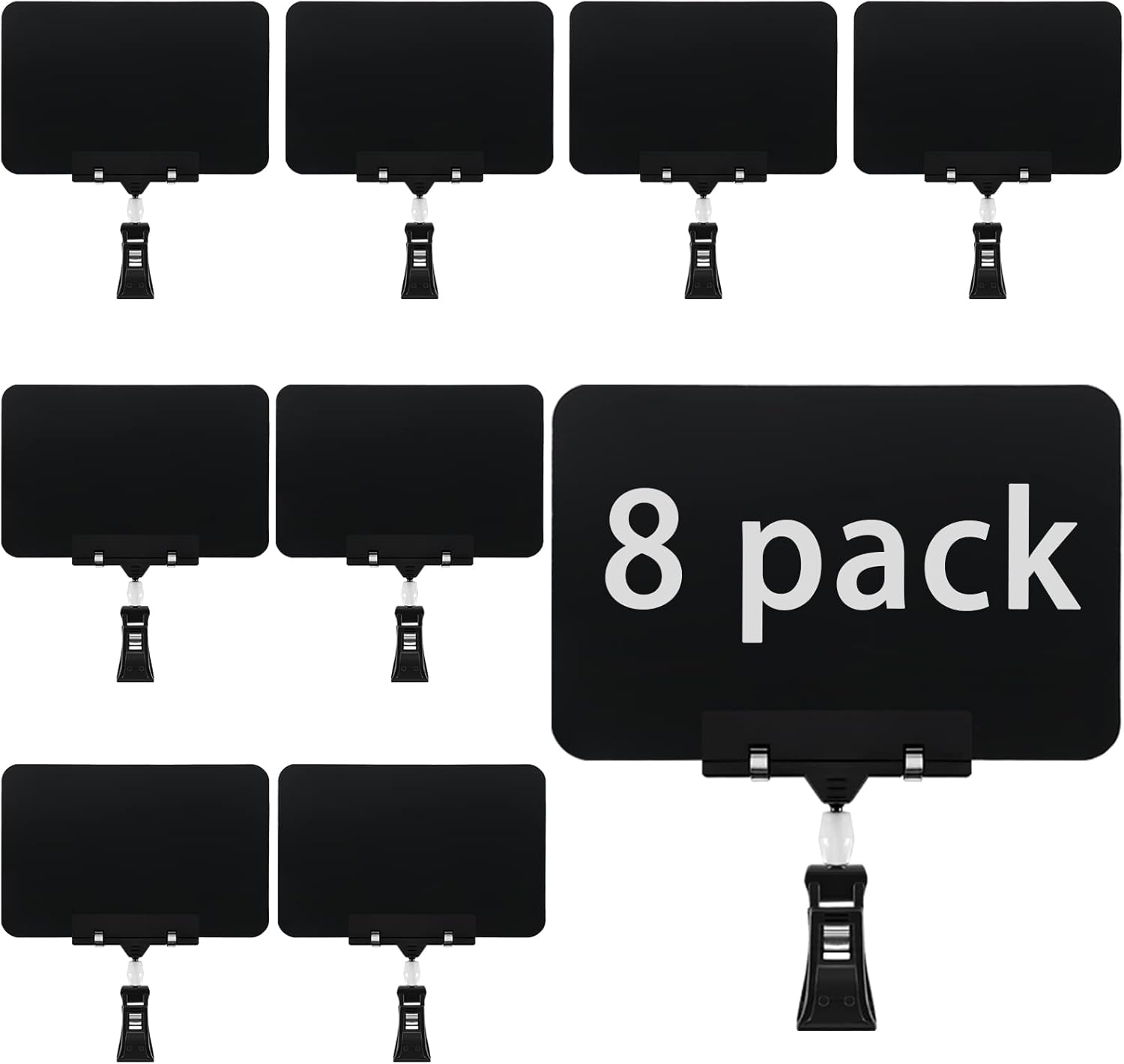 8 Pack Rotating Clip Pop Swivel Sign Rotatable Holding Clamp Sign Holder, Plastic Merchandise Sign Display Clip Holder with 2 Chalk Markers for Food, Store Signs Displays, black