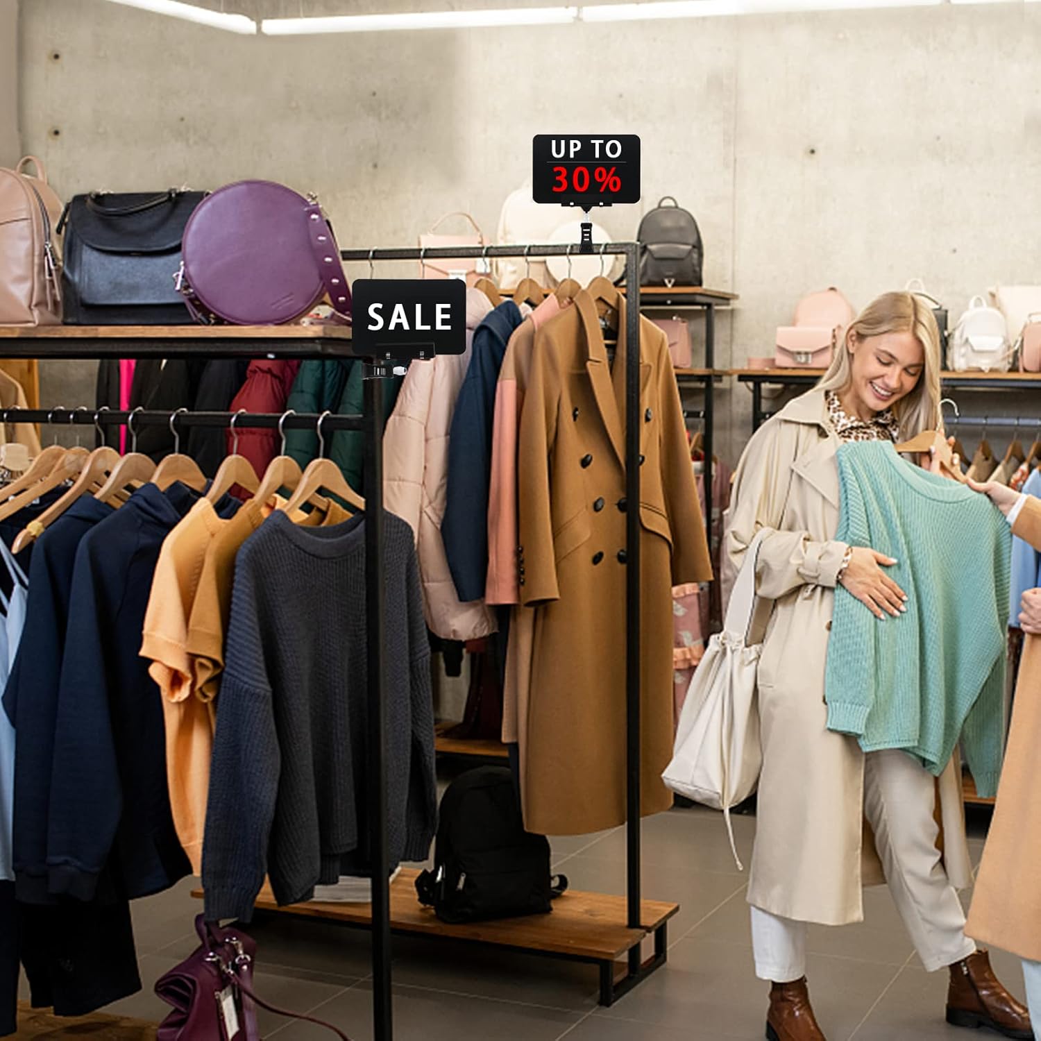 - Rotating Sign Price Tag Display: The plastic merchandise sign holder comes with reliable rotatable clip which can be rotated 360 degrees to adjust the position of the price display clips at any time, the bottom of adjustable sign holder clip can be opened about 2.5cm, and can be used for objects up to 0.9 inches in diameter or thickness.