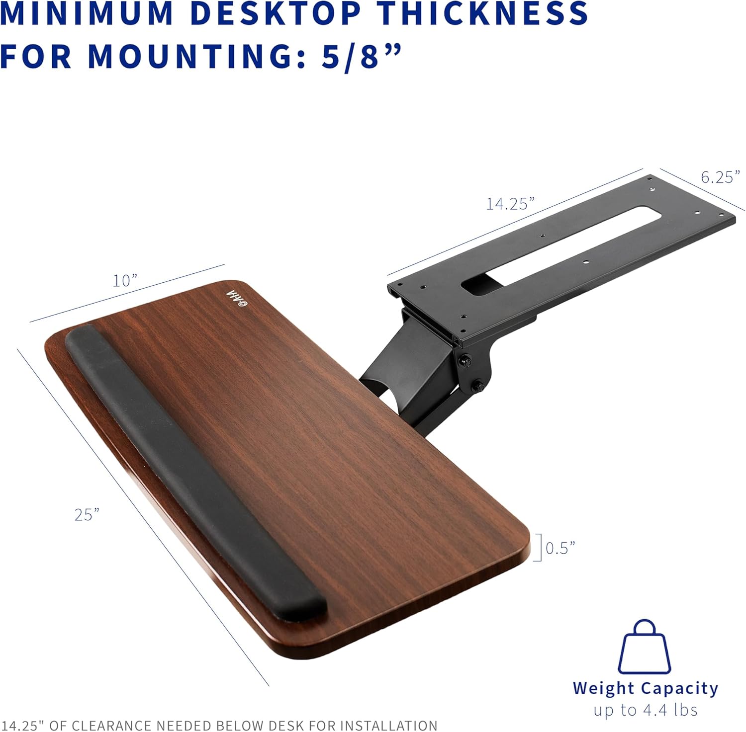 - Simple Assembly Process - All mounting hardware is included for fast and easy assembly. The total tray weight is 10 pounds. Please be sure your desk can support this under-mounted weight!