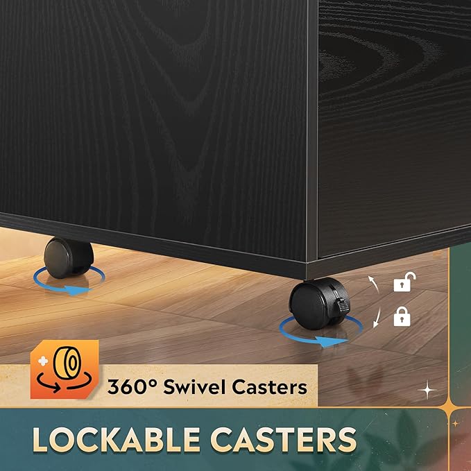 - Easy Mobility: The wooden file cabinet is equipped with four rolling wheels, allowing it to be easily moved and positioned beside or under a desk. The front two wheels have built-in brakes to keep the cabinet stable.