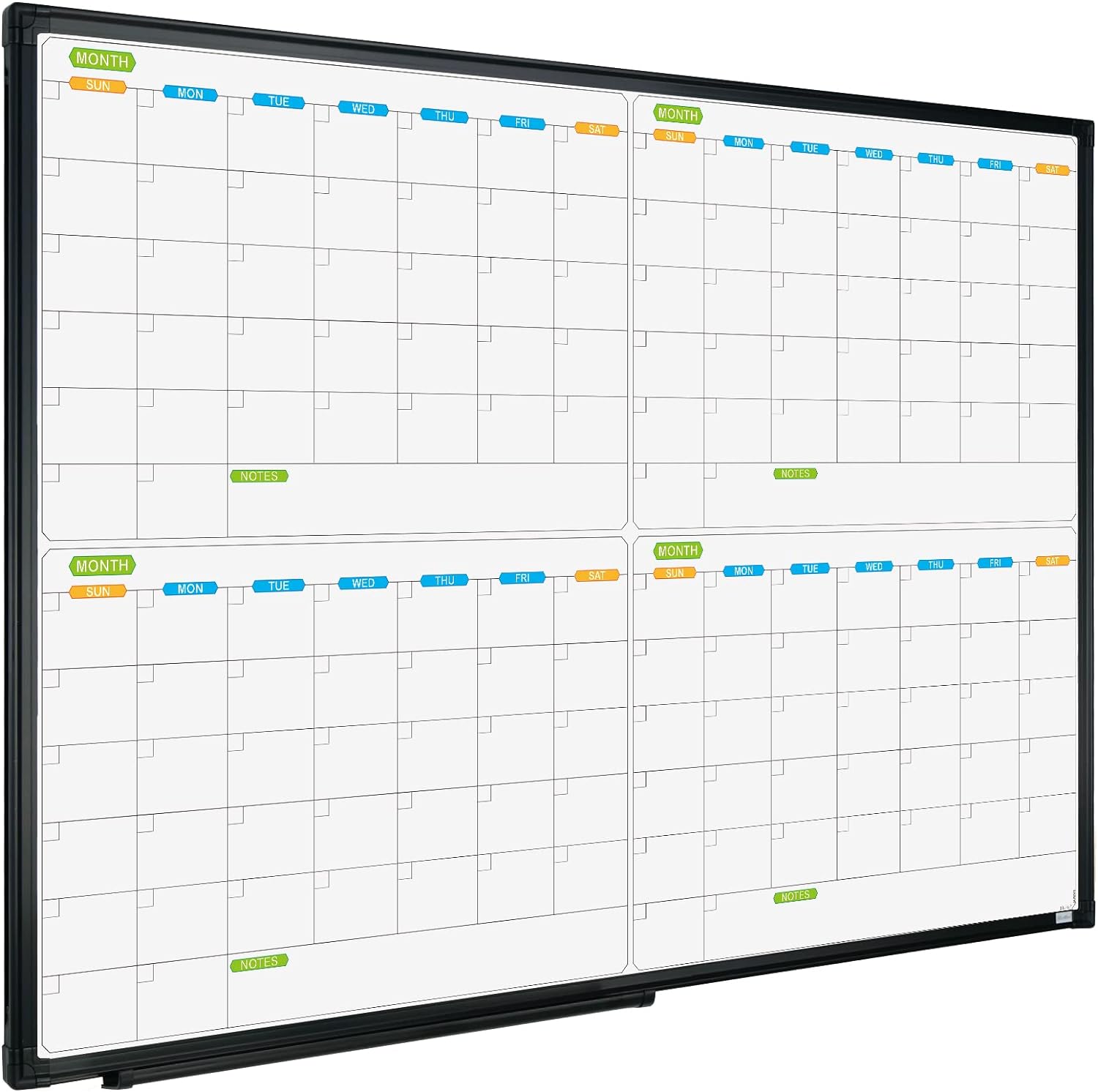 JILoffice Magnetic Dry Erase Calendar Whiteboard, 4 Month White Board Planner 36 X 24 Inch, Black Aluminum Frame Wall Mounted Board for Office Home and School