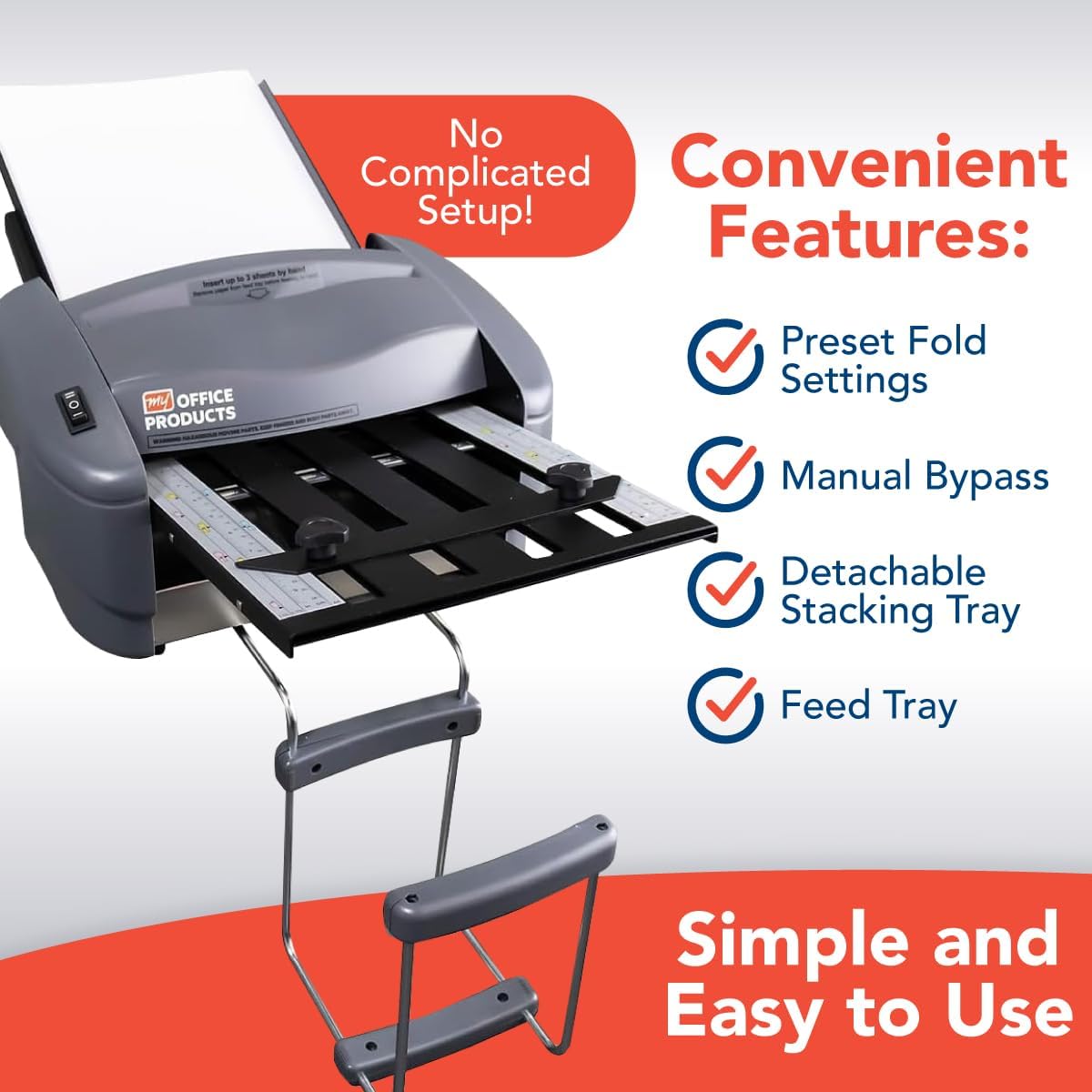 - {Easy to Use} Simple operation makes this paper folding machine a standout! Anyone in your office can use the machine as needed, without training or complicated setups