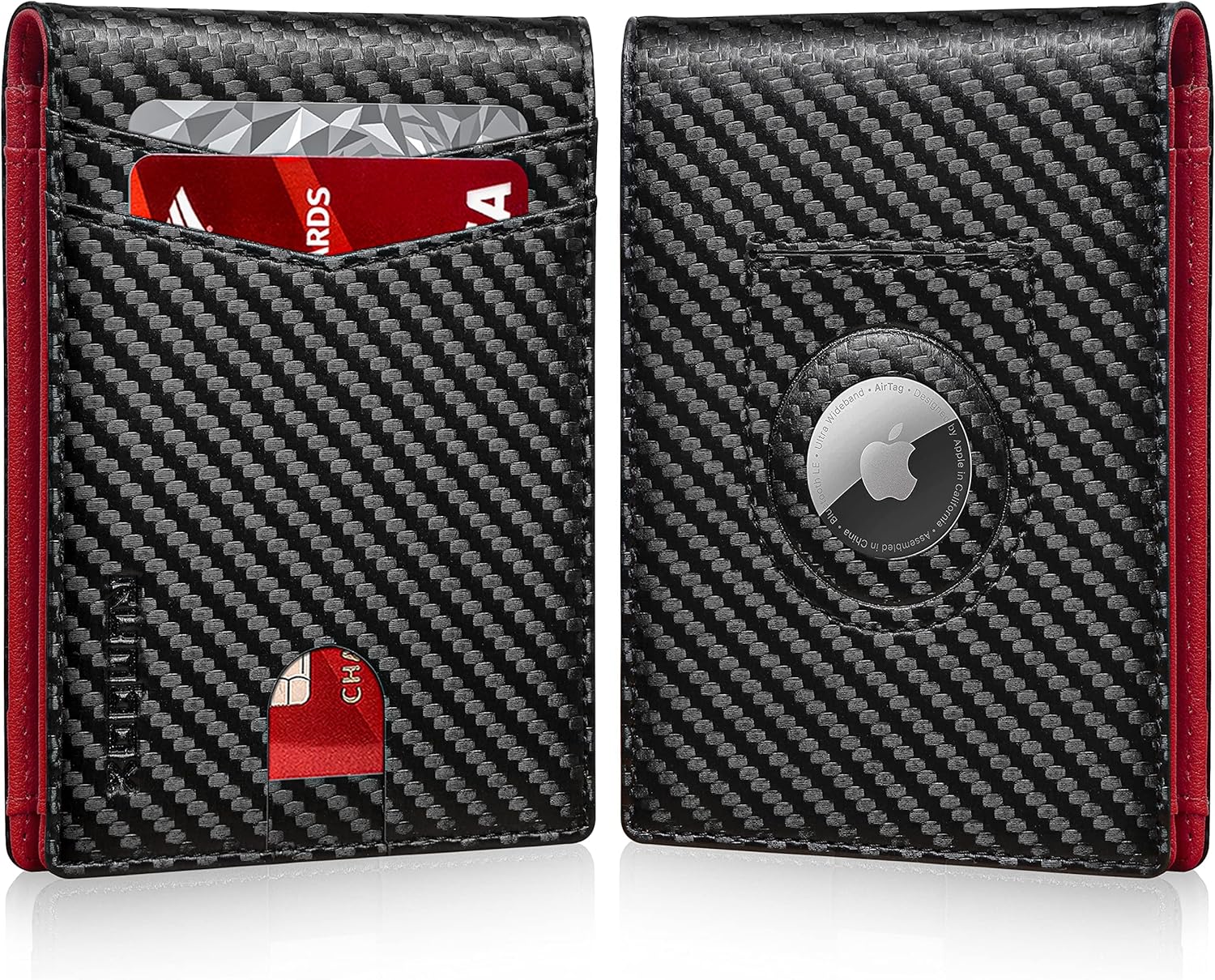- NO MONEY CLIP DESIGN - Measuring 4" x 3.5", this slim men's wallet boasts a bill compartment that occupies less space than a metal money clip, effectively reducing bulk. It includes 11 card slots, featuring a quick-access slot on the front, 10 slots on the wallet sleeves, and 1 integrated AirTag pocket. (AirTag is not included)