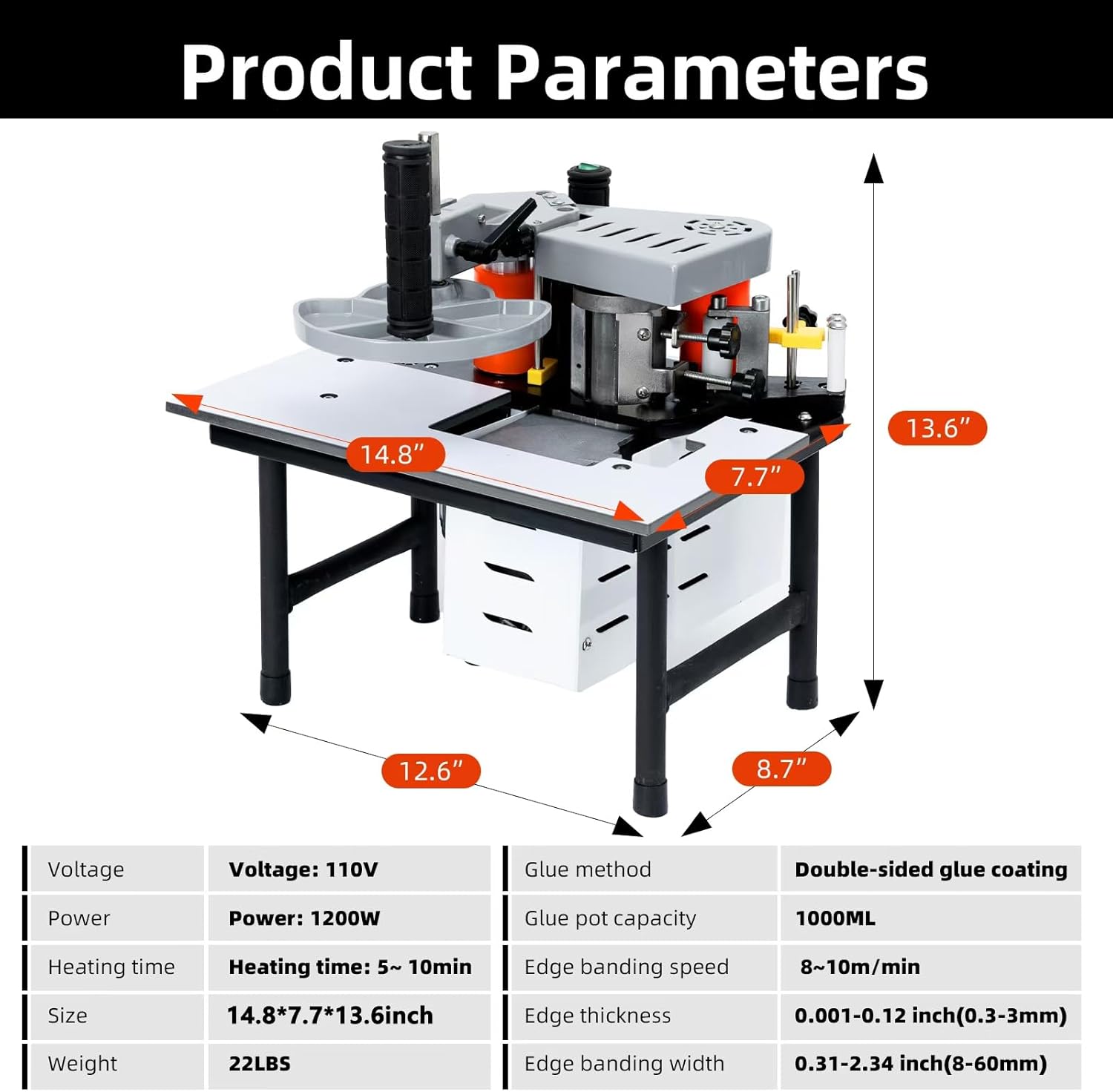 Edge Bander – Portable Edge Banding Machine, Straight & Curve Line, Double-Sided Glue Coating, Adjustable Speed, 110V, Durable & Efficient for Professional Edge Banding