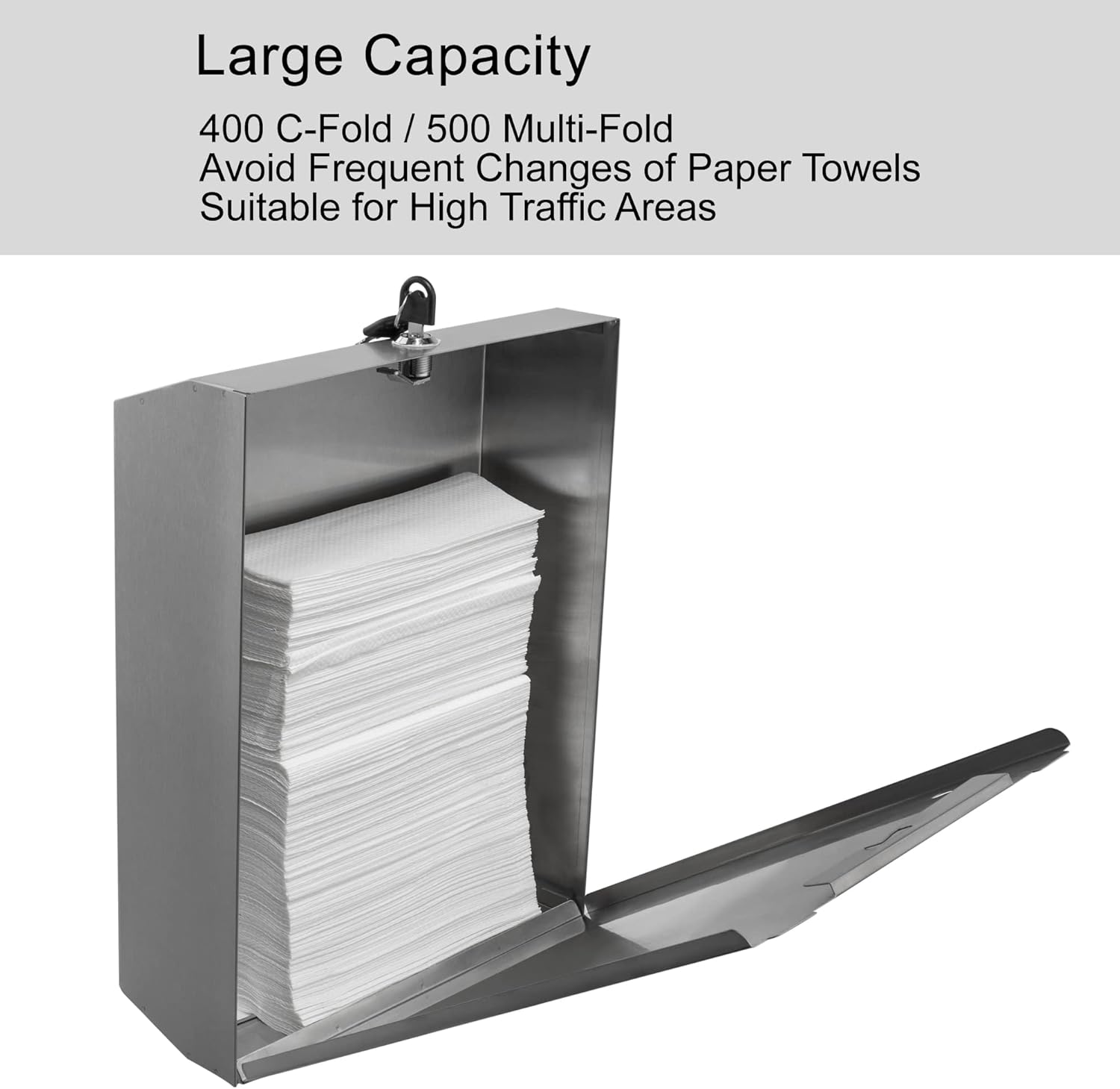 Paper Towel Dispenser, Commercial Stainless Steel Tri-fold/Multi-fold/C-Fold Paper Towel Holder Wall Mount Key (Brushed)