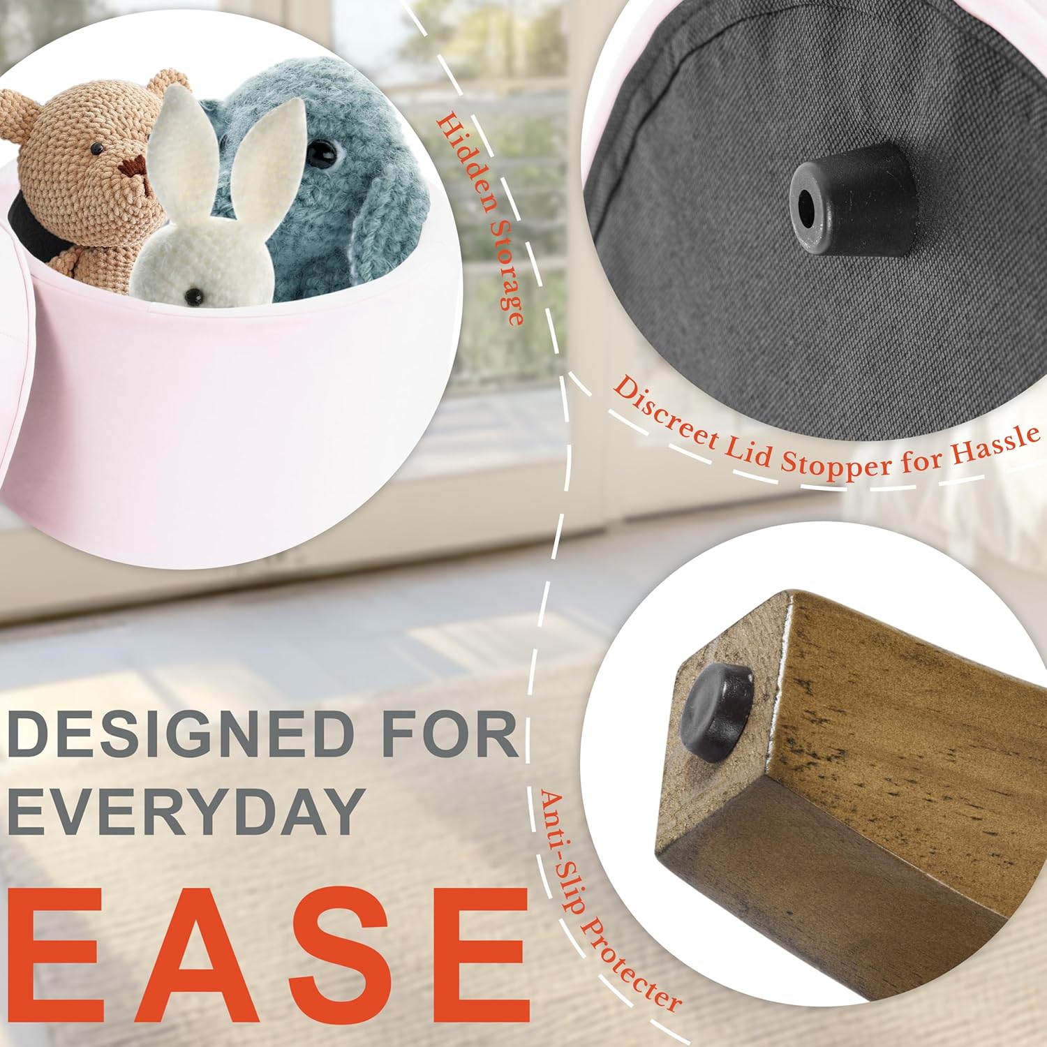 - OTTOMAN FOOT REST: Weighing at 14.3lbs our round ottoman with storage supports a capacity of up to 250lbs