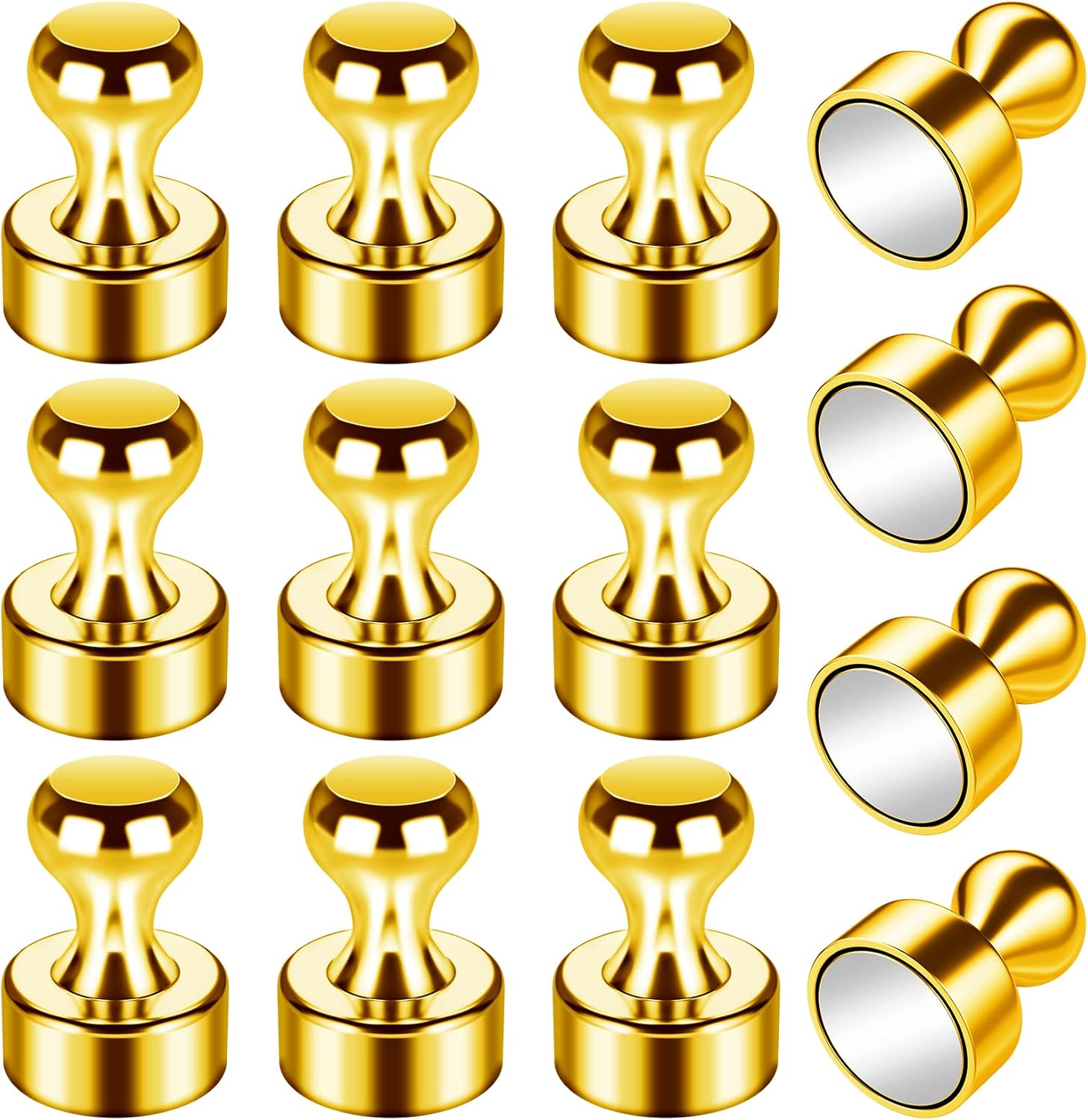 - 🛒GREAT VALUE FOR PRICE: There are 12 pack magnetic push pins in the plastic set, and each magnetic push pins is smooth but easy to grasp, which are powerful and of great value. Due to strong magnetism, the fridge magnets are best for DIY magnetic walls, guestbooks, recipes, and memos.