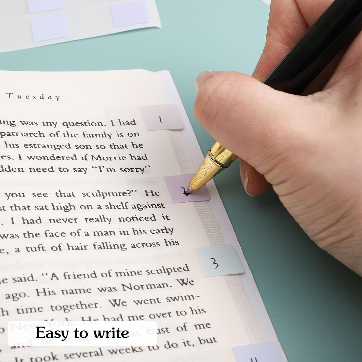 - Transparent Design: Half of the book sticky tab is transparent, with self-adhesive, it will not obscure characters, and the other half can be written to help you better mark and organize documents