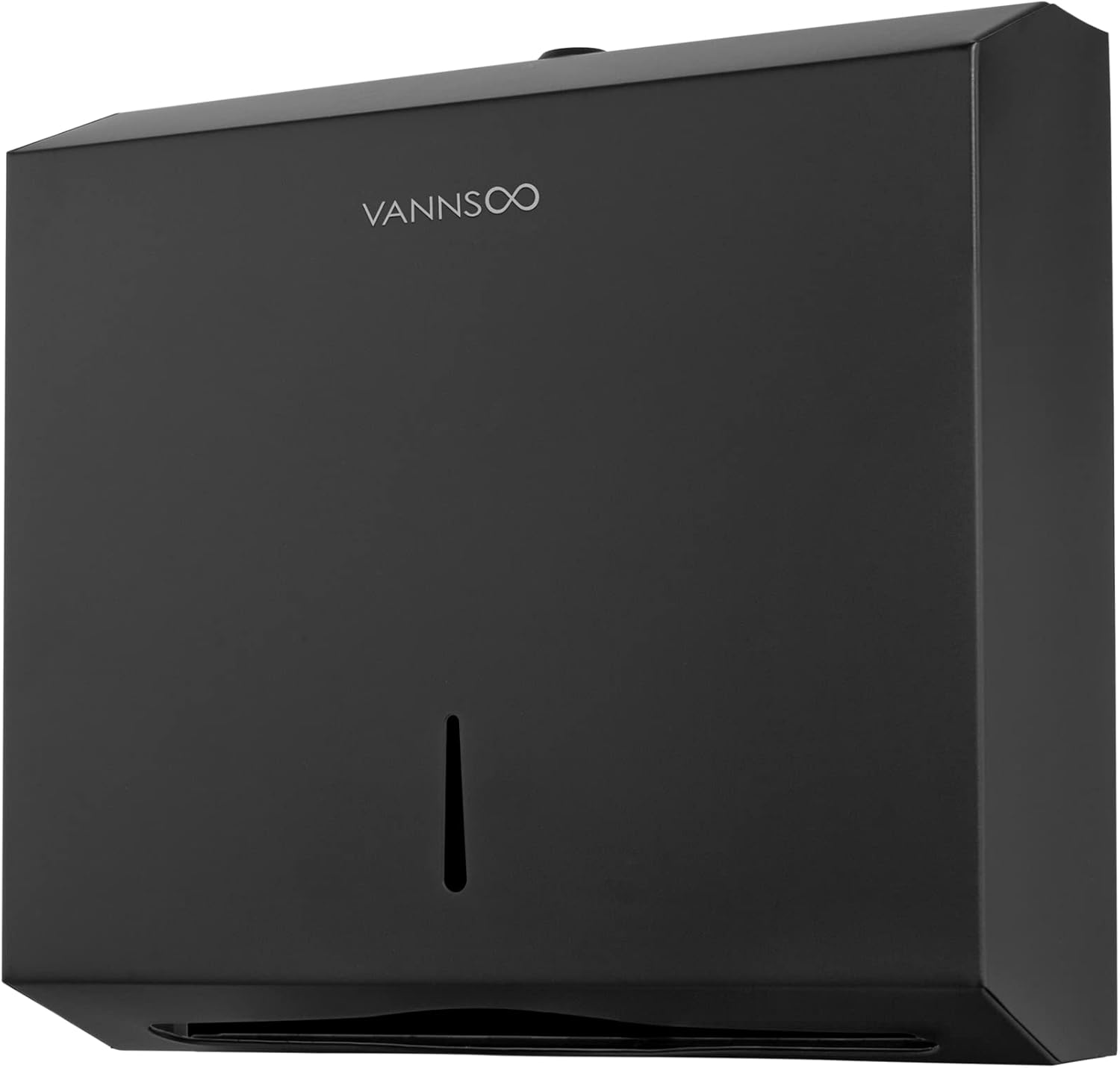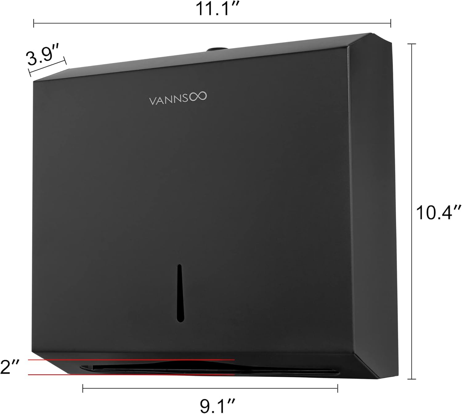 Commercial Paper Towel Dispenser Wall Mount, Tri-fold/Multi-fold/C-Fold Stainless Steel Paper Towel Holder Hand Towel Dispenser with Key (Black)