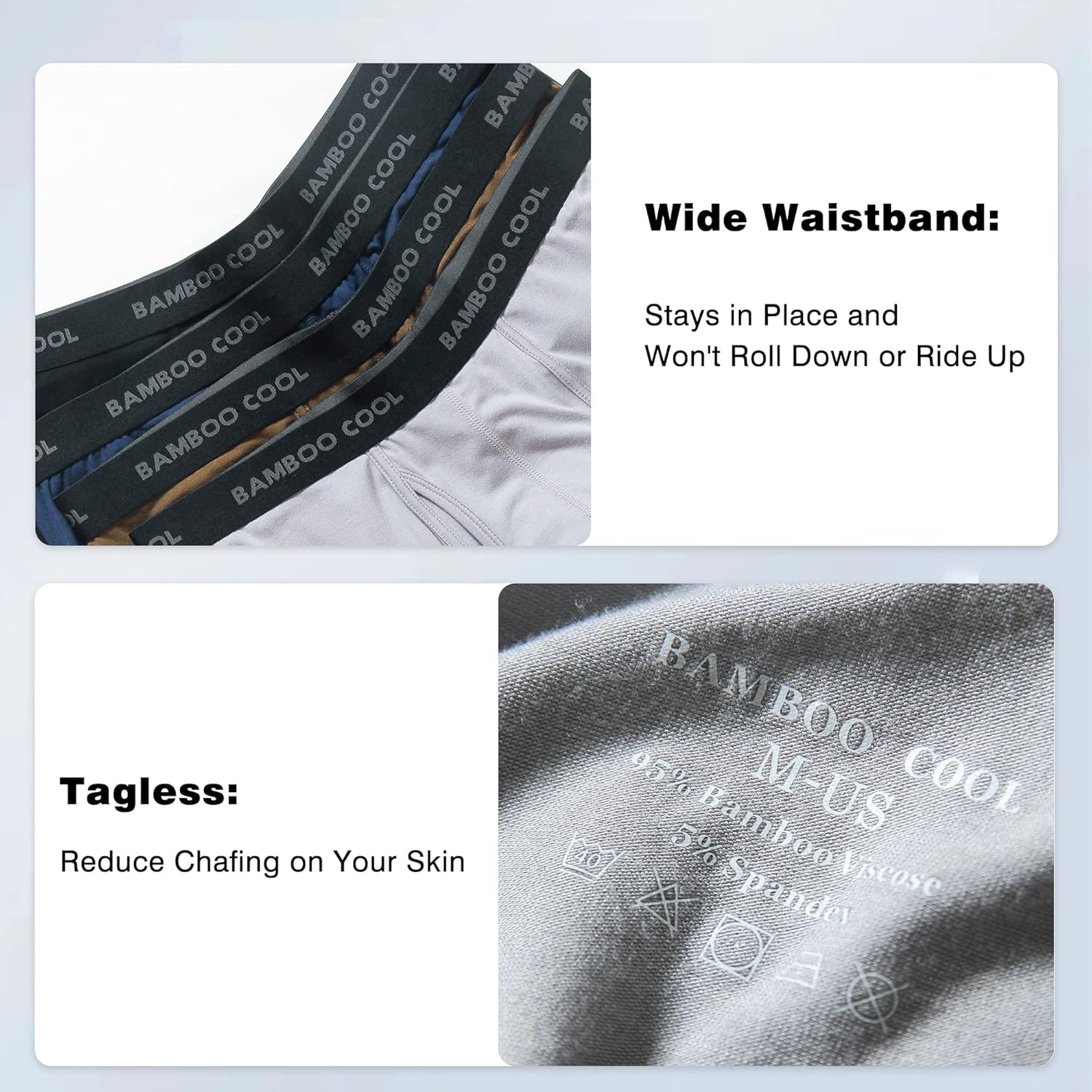BAMBOO COOL Men's Ultra Breathable Underwear,No Riding Up Boxer Briefs with ComfortFlexible Waistband,Multipack
