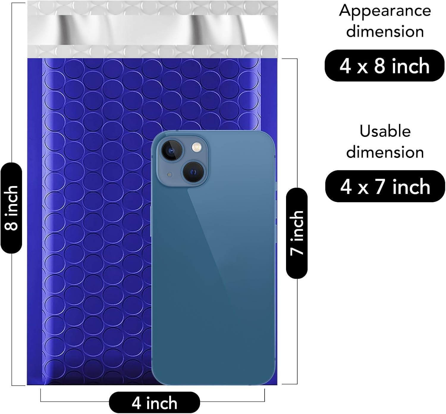 - Perfect Size #000 Blue Bubble Mailers: The poly bubble mailers padded outer size is 4x8 inch, while the inner size is 4x7 inch. It is very suitable to transport for jewelry, makeup, cards, phone case, lips, photosοΌhandcraft and more. Great for small business packing.