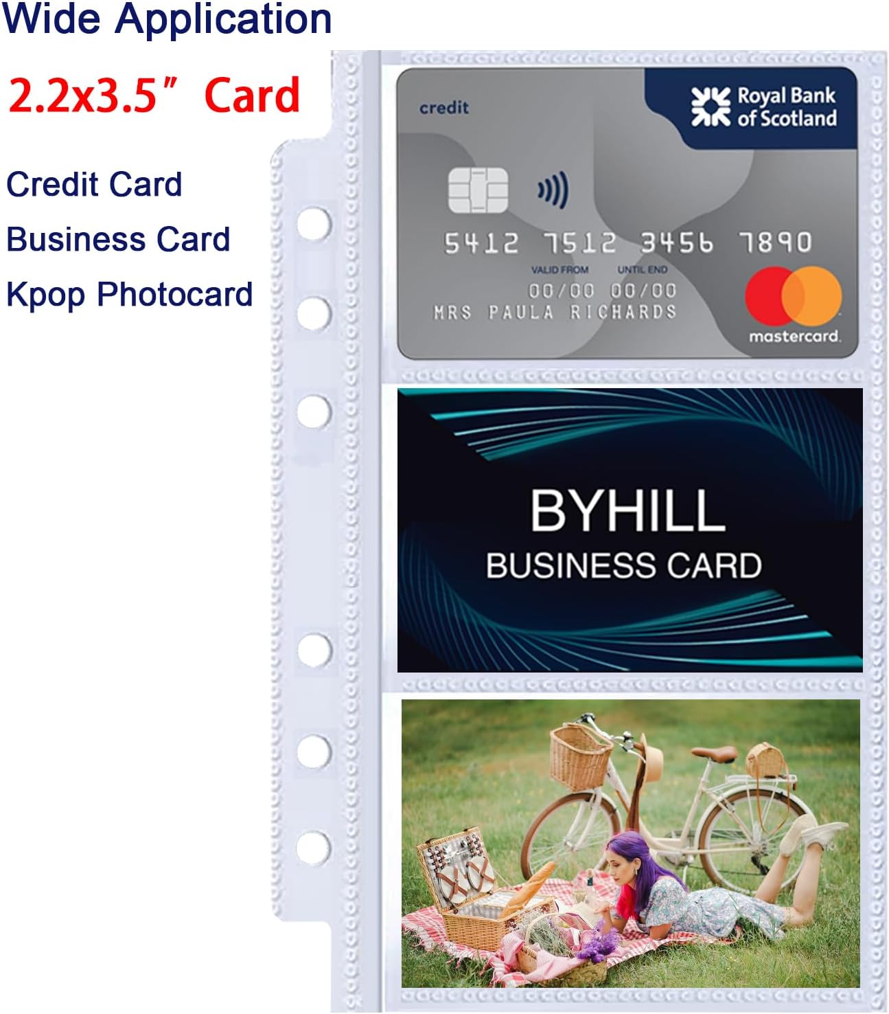 40 Pack 240 Pockets A6 Binder Business Card Sleeves, Ultra-Clear K-pop Photocard Sleeves, Double Sided 3 Pocket 6 Ring Planner Refill Pages for Business Card, Credit Card and K-pop Photocard