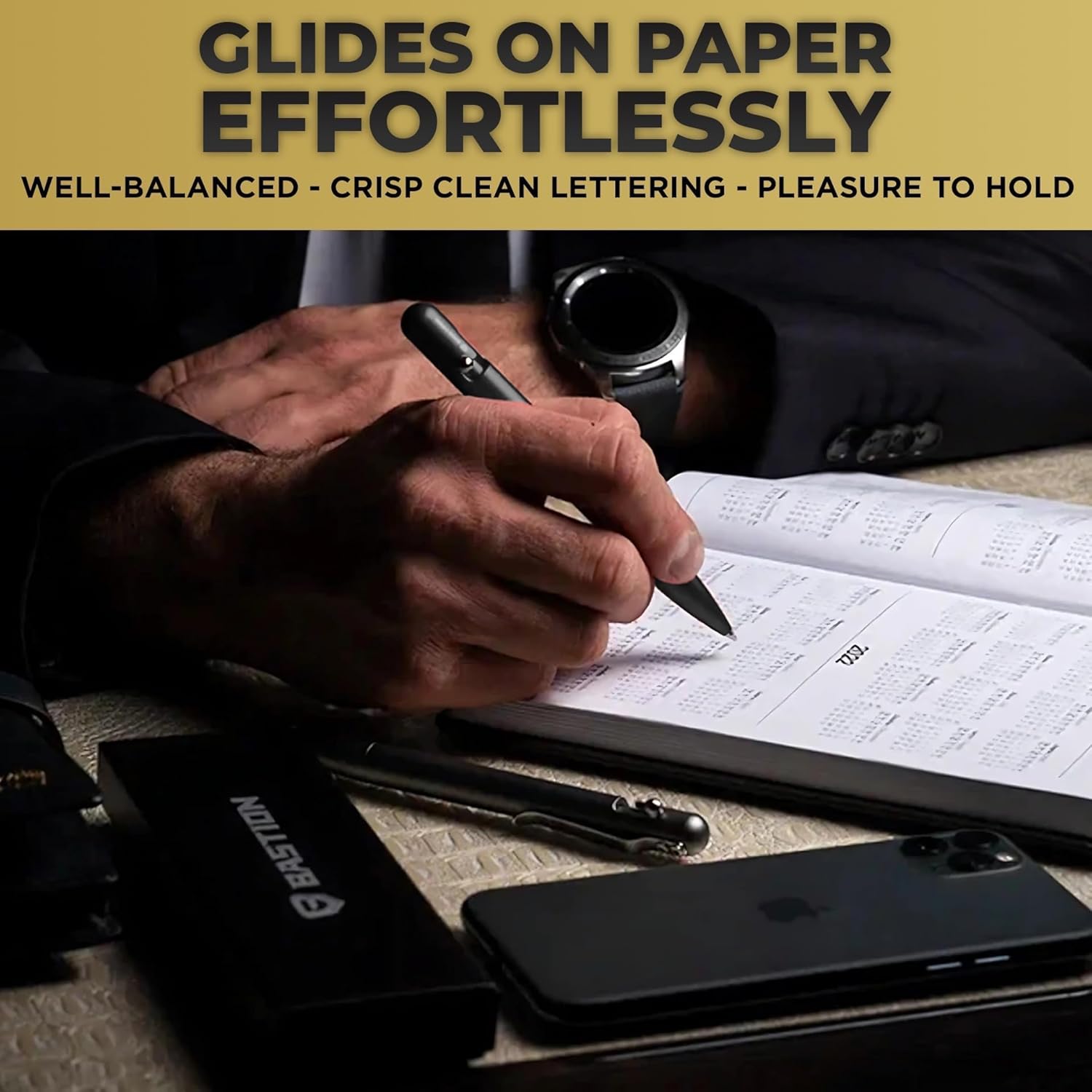 BASTION® Luxury Slim Bolt Action Pen, Durable EDC Pen with Fine Tip, Professional Ballpoint Pen for School and Work - Stainless Steel Black