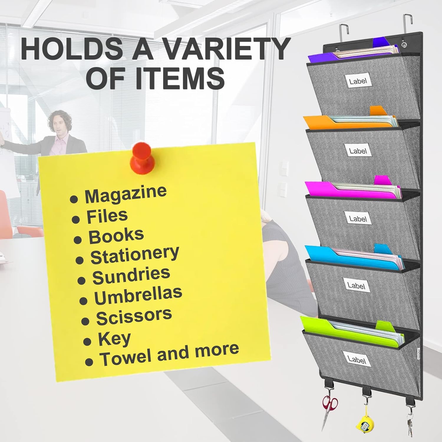 - [Ideal for Teachers and Office] - Keep your classroom organized, use this over the door file organizer to slot in daily work lessons for absentees to catch up on missing work, don’t lose important papers, hang in the hub of your house to organize family activities, display scholastic magazines, create a homework log for the week, use each slot for a different subject for homework.