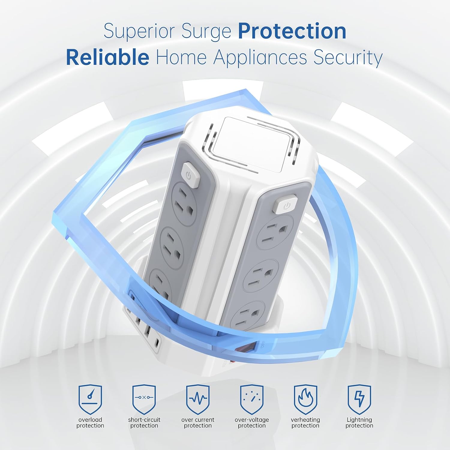- 【What you will get?】 Includes our surge protector power strip tower, user manual, and 24/7 customer service. Perfect as a space-saving power tower for travel or daily use, this extension cord with multiple outlets replaces clunky power strips and surge protectors. Backed by lifetime tech support!