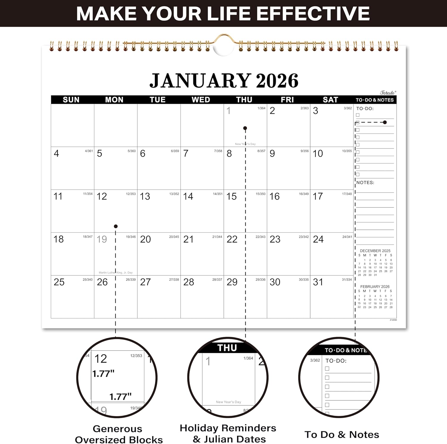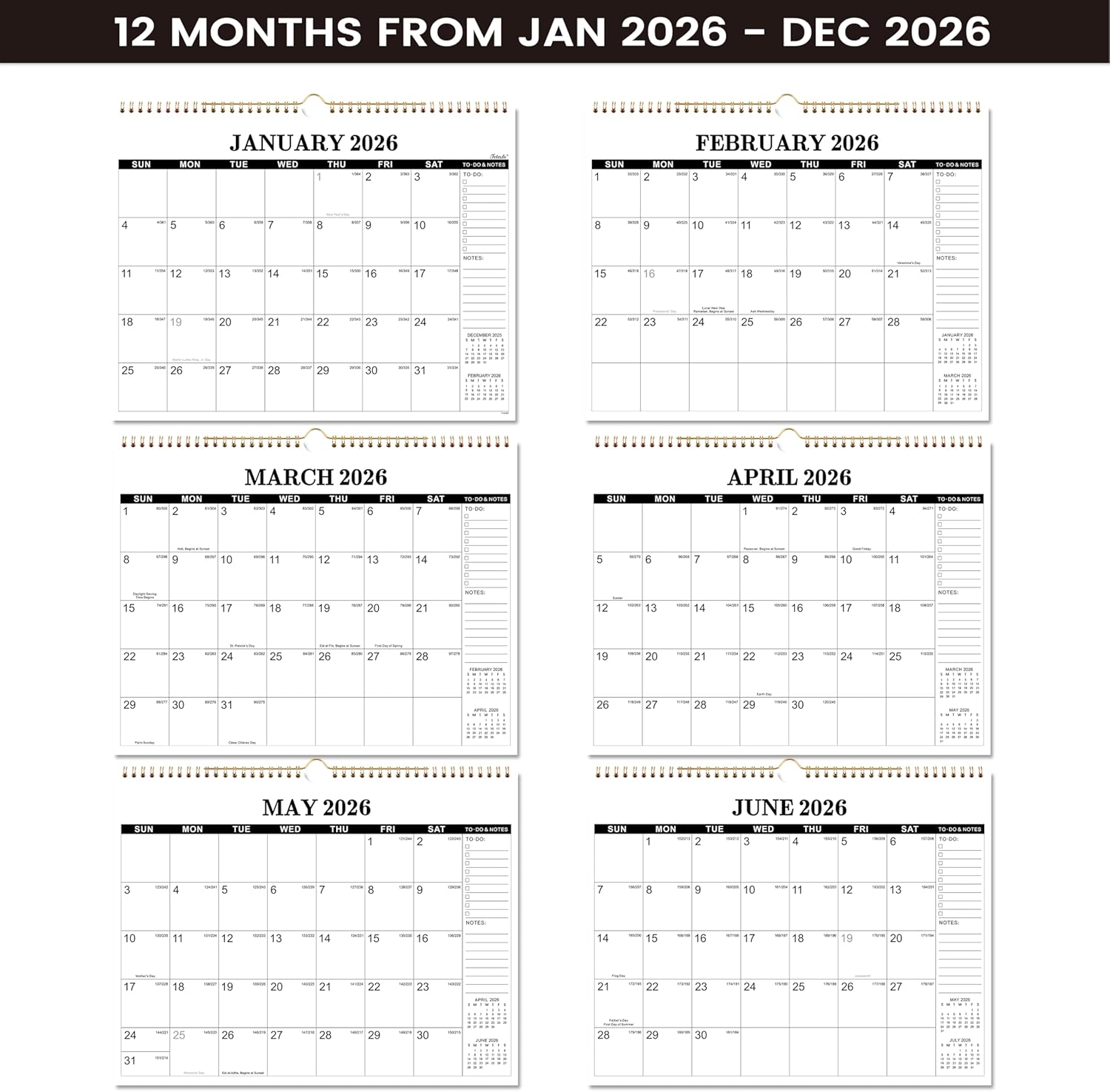 - π Premium Quality Paper - Papers of this wall calendar 2026 can avoid ink feathering and bleeding. High-quality pages made from acid-free paper, resistant from the damage by light and air.Great for writing and you can see your plans clearly.