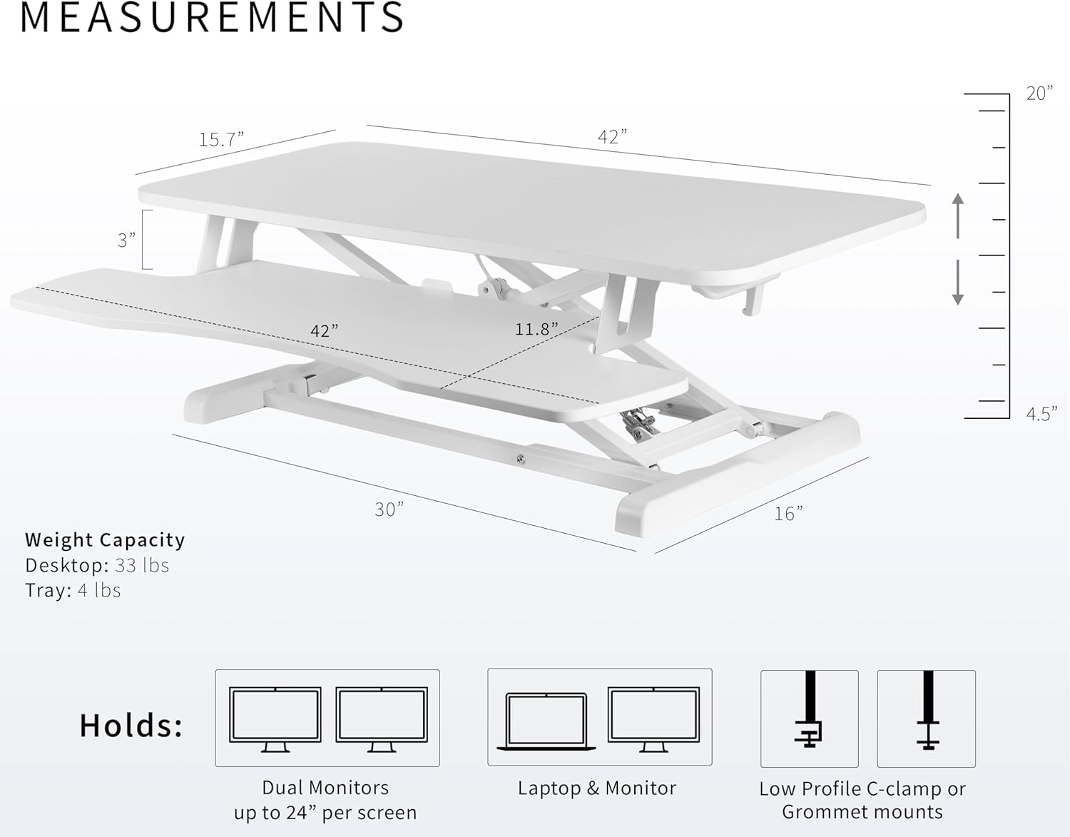 VIVO 42 inch Desk Converter, K Series, Height Adjustable Sit to Stand Riser, Dual Monitor and Laptop Workstation with Wide Keyboard Tray, White, DESK-V042KW