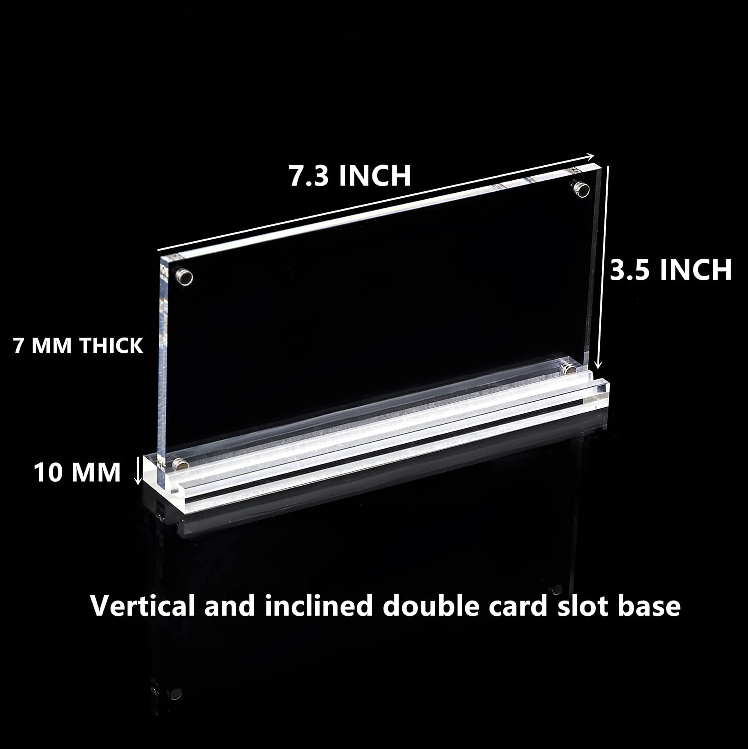 - WIDELY USED: Clear 7.3x3.5 inch acrylic frame with base supports,designed for photos,paper currency,pictures,stamps,paintings or other paper items and arts,real estate licenses and bank checks; a smaller size picture or currency will leave a border for a floating effect and makes your bill display stand out,only for tabletop or desktop display