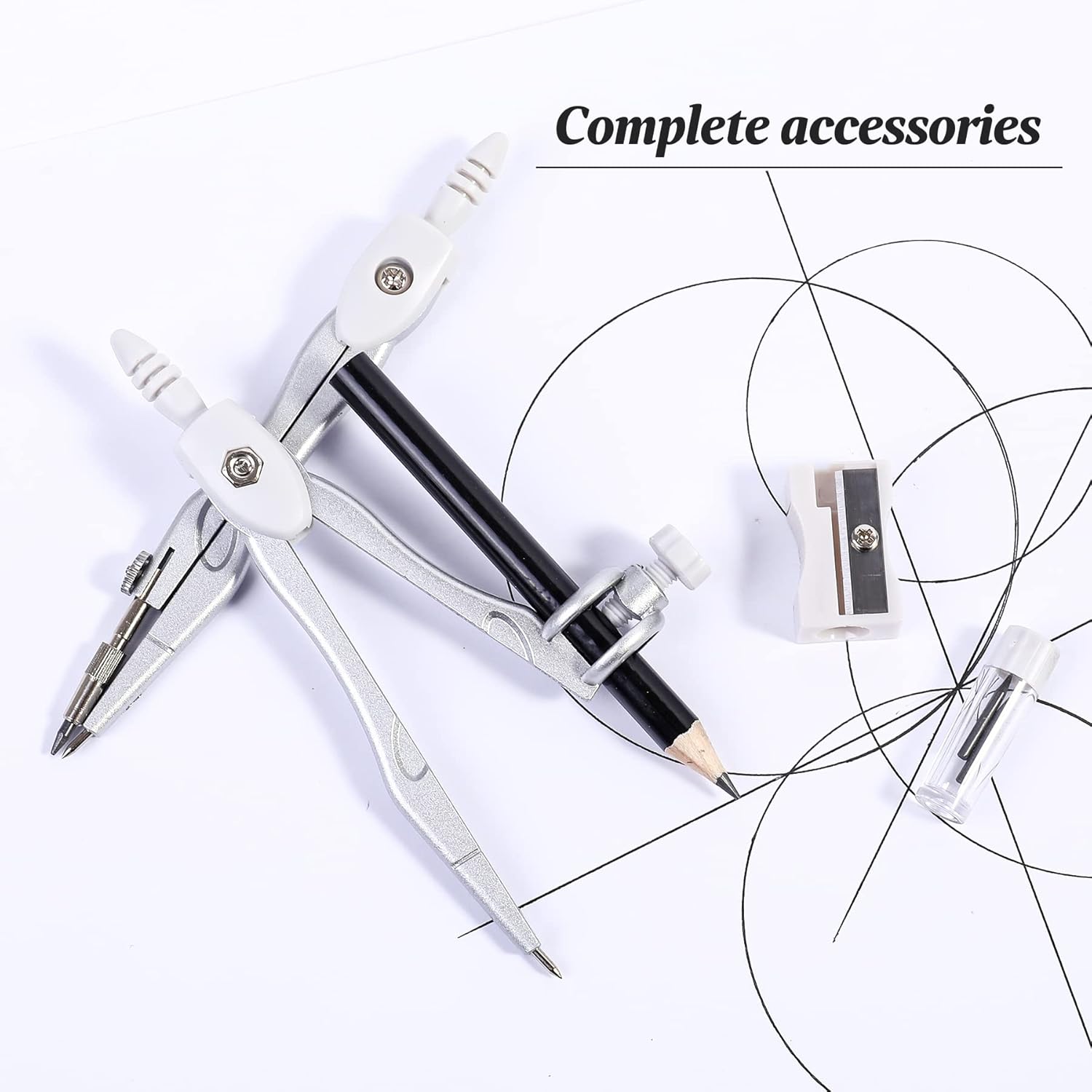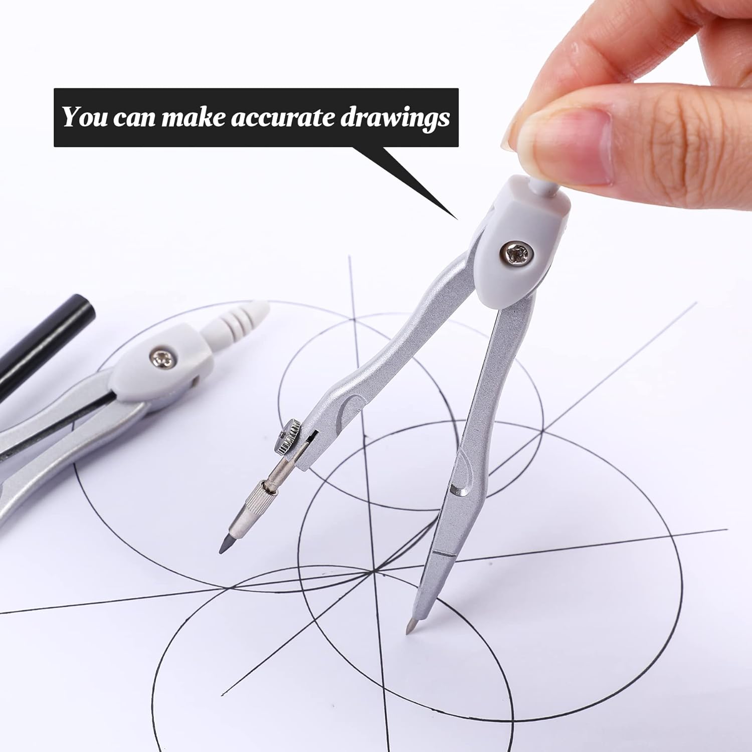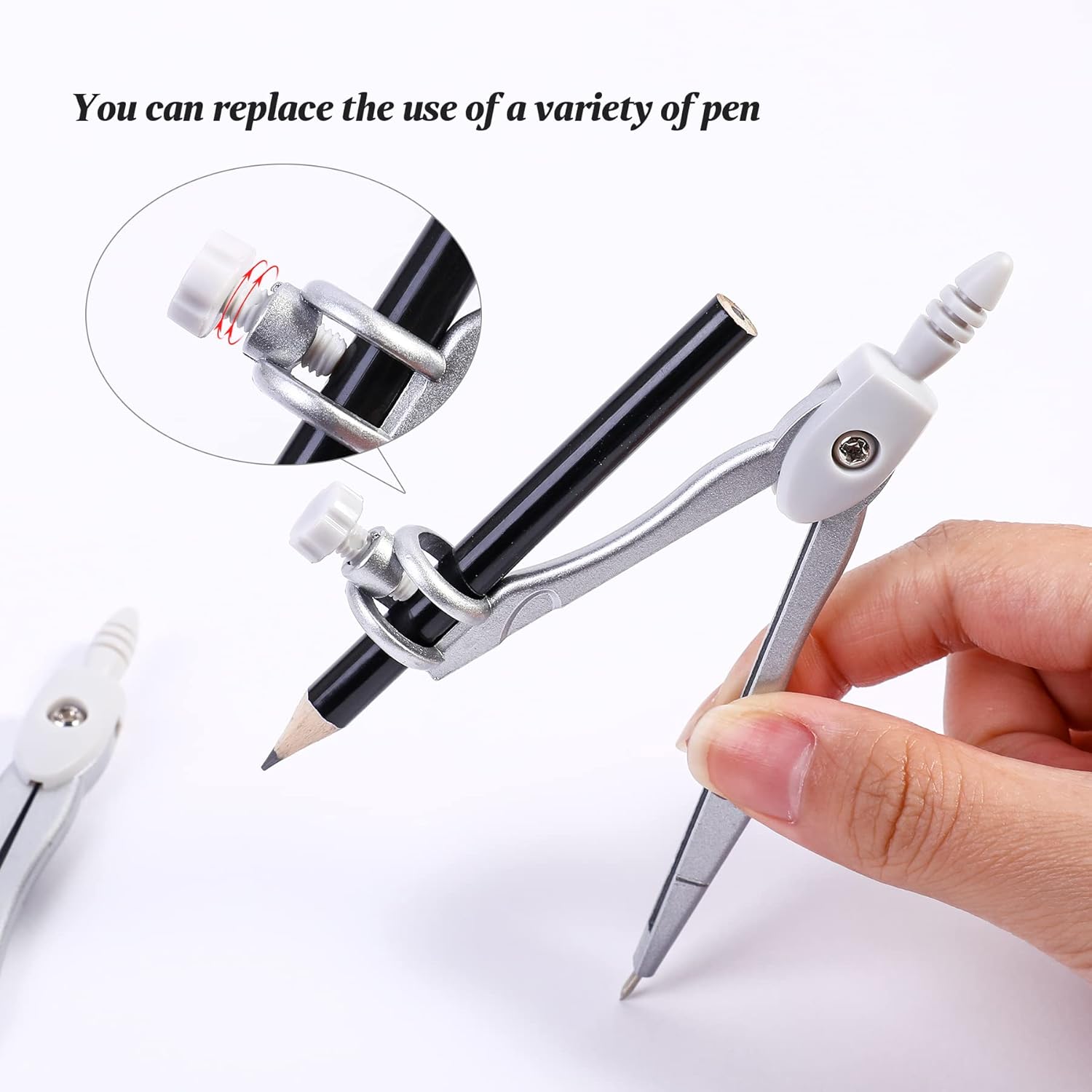 - A Practical Compass Geometry Set: Metal compasses will not bend, Ergonomically designed compass head is comfortable to hold, Universal Holder Compass work with any standard sized pencil or pen