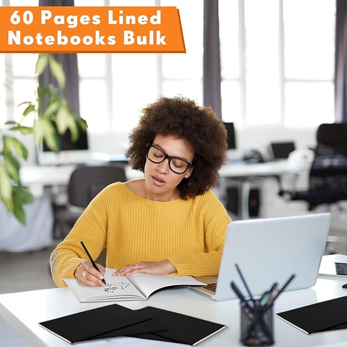 100 Pcs Kraft Notebook Journals 5.5 Inch x 8.3 Inch A5 Softcover Notebooks Bulk for Writing Sketch Office Notepad with 60 Pages 30 Sheets (Multicolor,Lined)(Black,Lined)