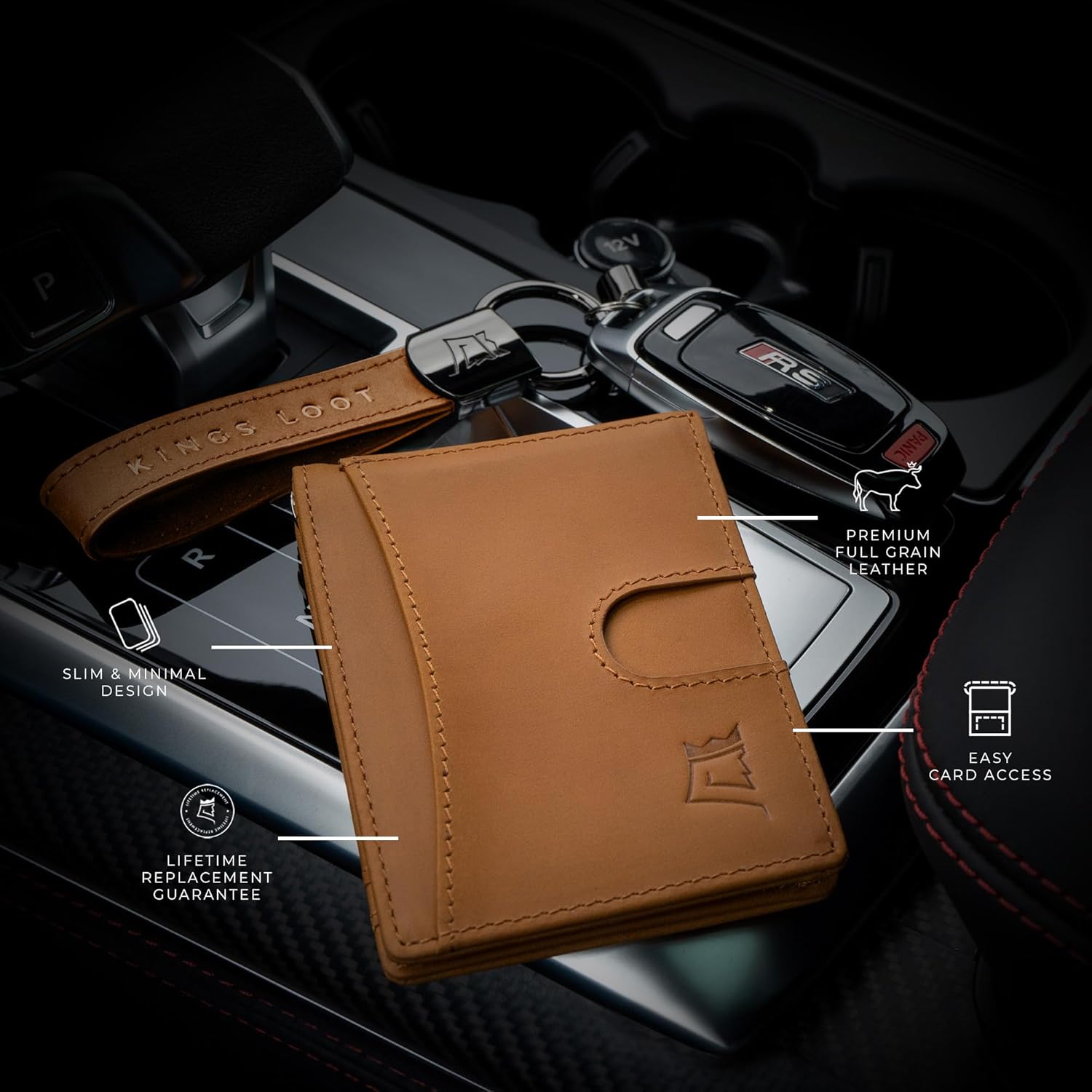 Kings Loot Money Clip Slim Minimalist Wallet for Men – RFID Blocking Leather Design with Money Clip – Front Pocket Bifold Holds 12 Cards – Stylish & Compact Wallets (Buckskin)