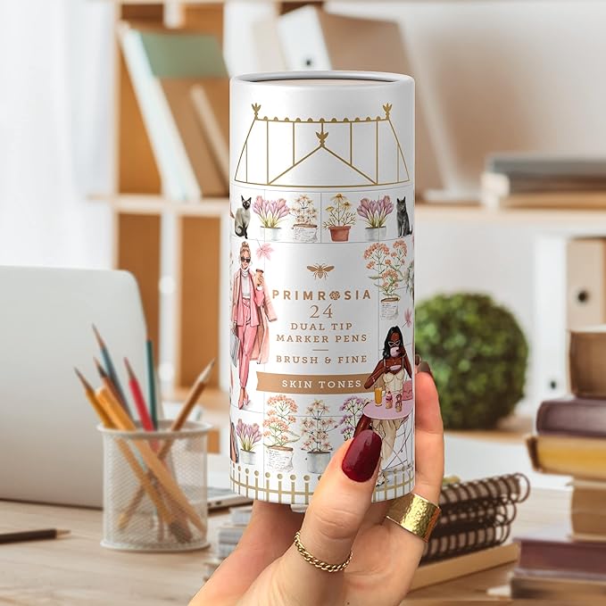 Primrosia 24 Skin Tones Dual Tip Marker Pens, Hair and Portrait Watercolor Sketch Set – Fine and Brush Ends, Art Supplies for Coloring, Sketching and Drawing