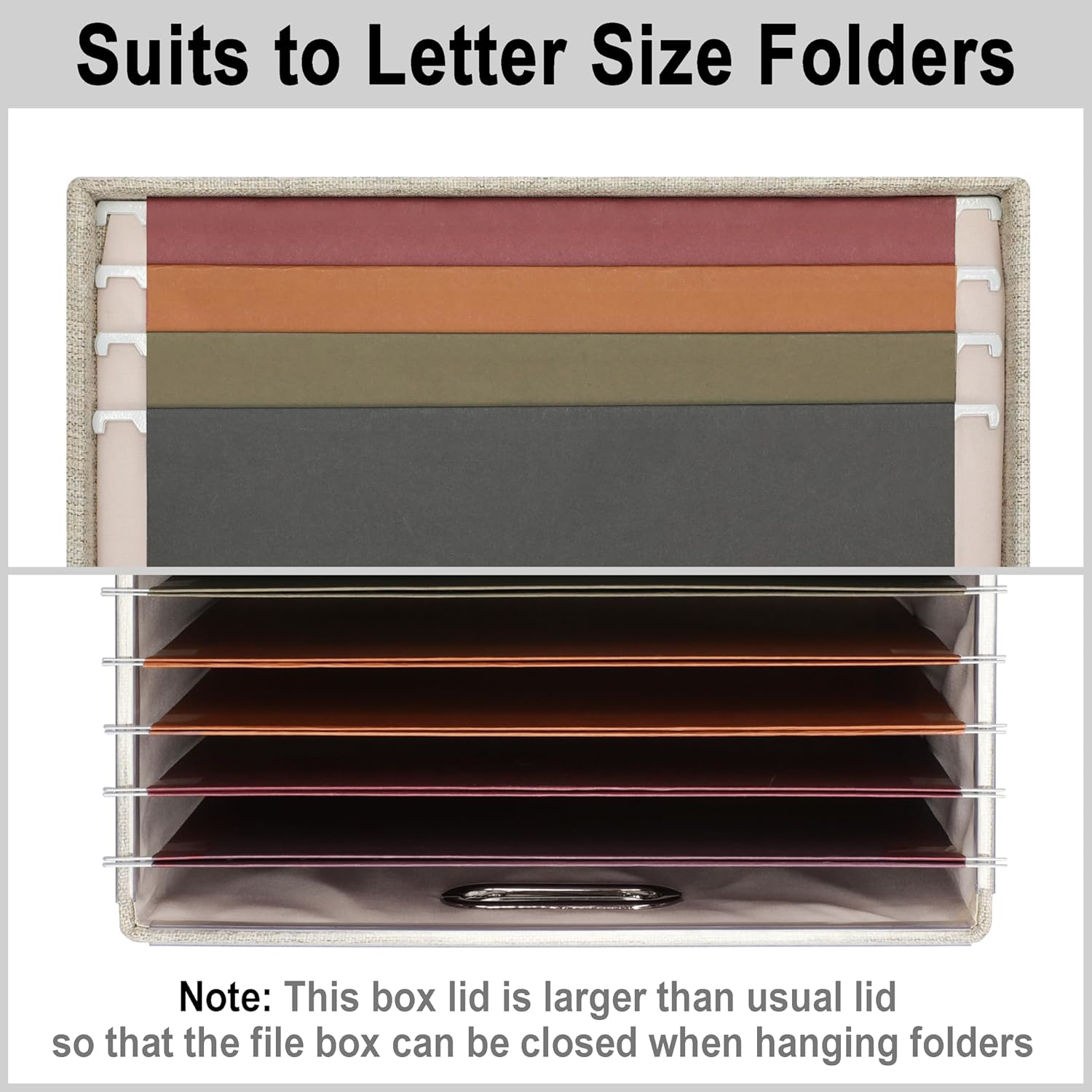- Quality Files Protector: Our hanging file organizer box with folders composed of thick textured linen cover and heavy-duty thick density cardboard. Solid and wear-resistant, the stack ability of our hanging file folder organizer box is at least 50 lbs. Every hanging file folder box with lid can protect your files from misshapen and You can use these hanging file folder portable box for file folders everyday or for long term storage.