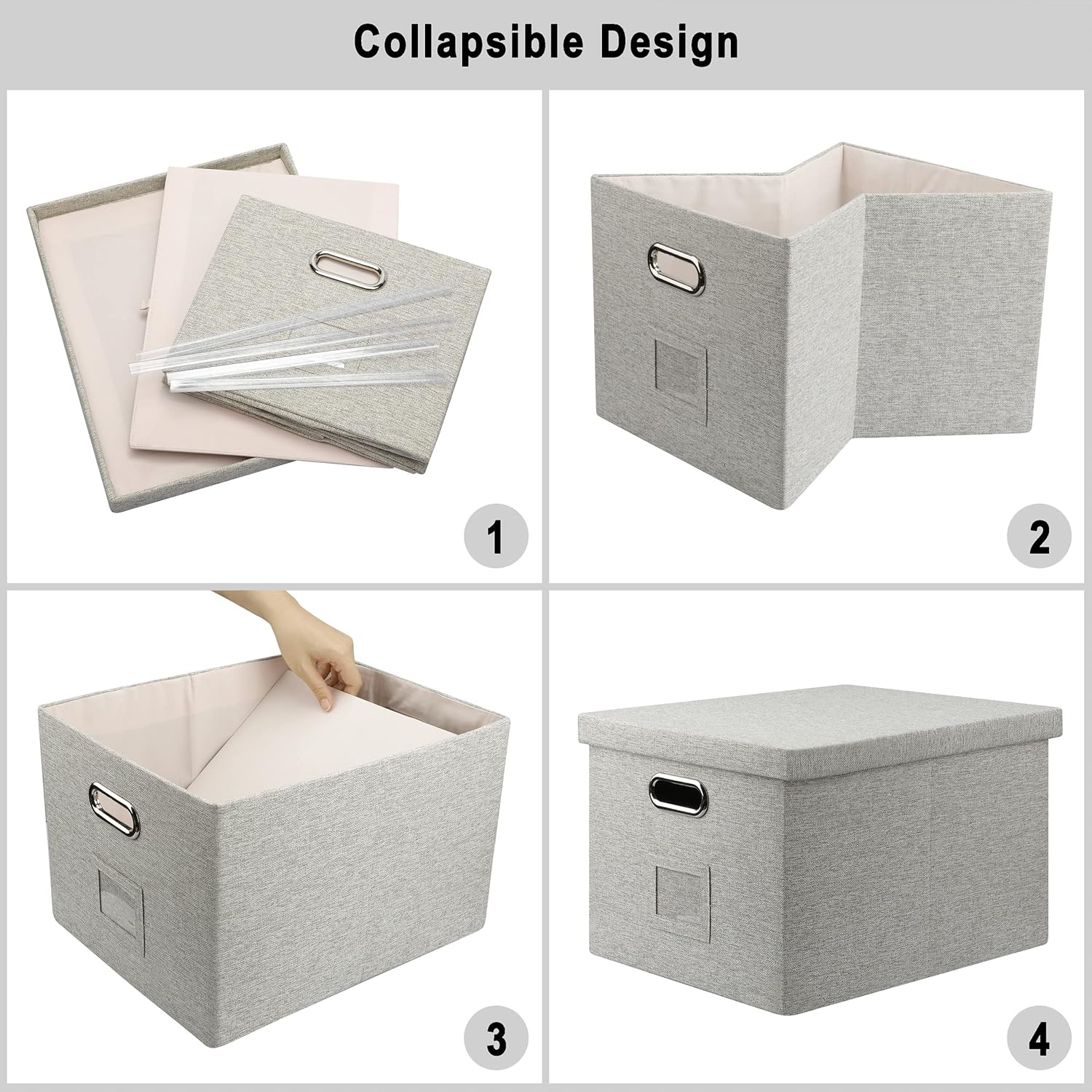File Organizer Box, Decorative Storage Filling Box with Lid for Letter Legal Size Hanging Folders Collapsible Linen File Folder Box Office Document Storage Filing Bin, Beige 4 Pack