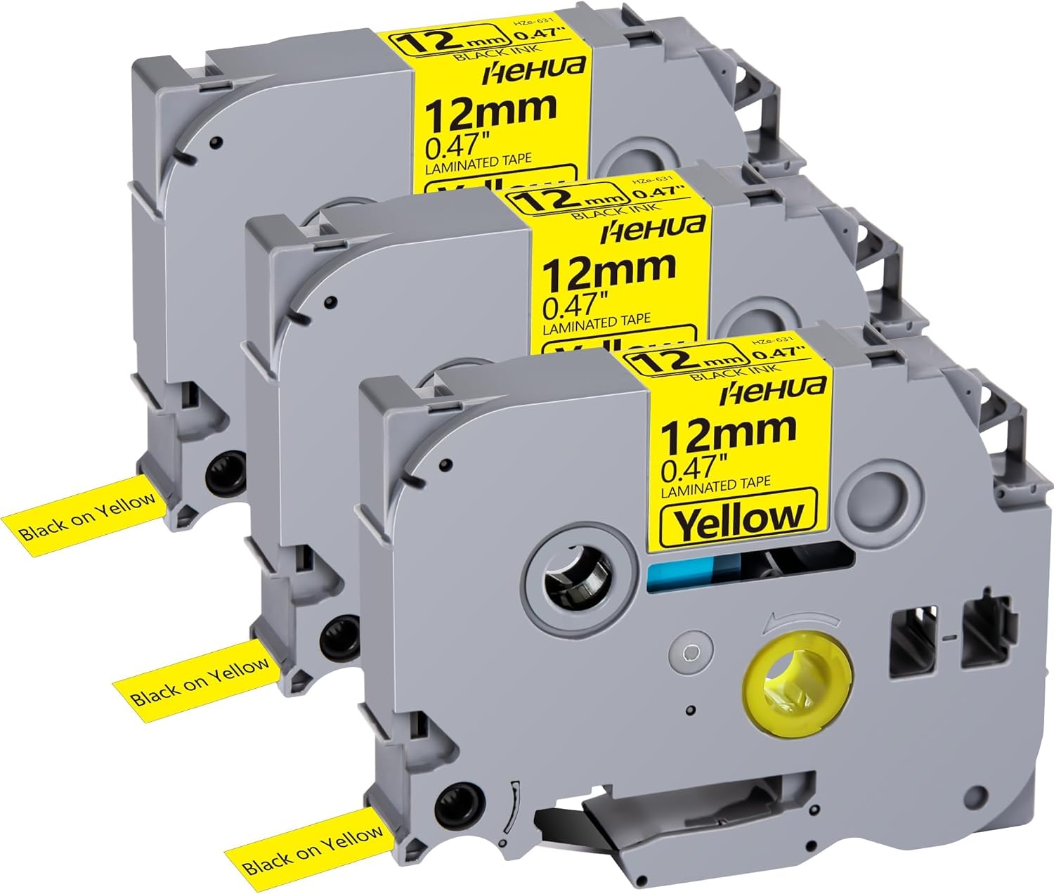 Hehua Tape Tze Tz 12mm 0.47 Black on Yellow Laminated Compatible for Brother TZe-631, TZe631 TZ-631 Label Maker Tape Compatible for Brother Ptouch Tape 12mm 0.47 Yellow for PT-D200, 3 Pack