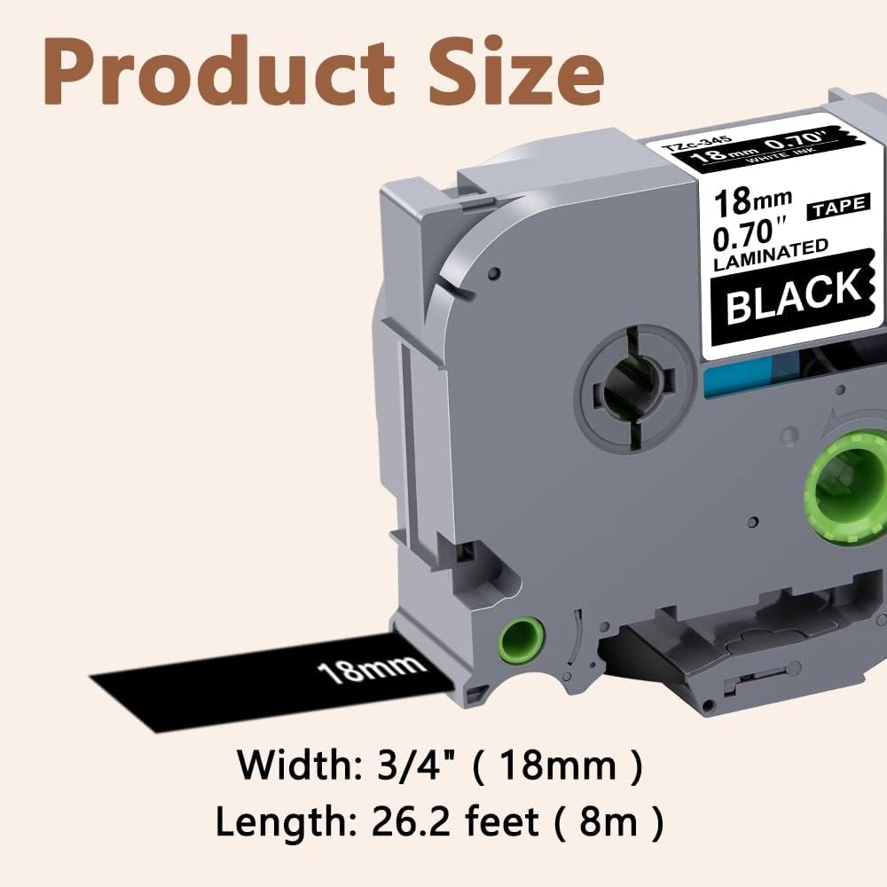 - Product features : Split back, water resistant, fading resistant, abrasion resistant, temperature resistant, strong adhesive. This compatibel label tape 18mm TZe-345 White on Black is suitable for indoor and outdoor use