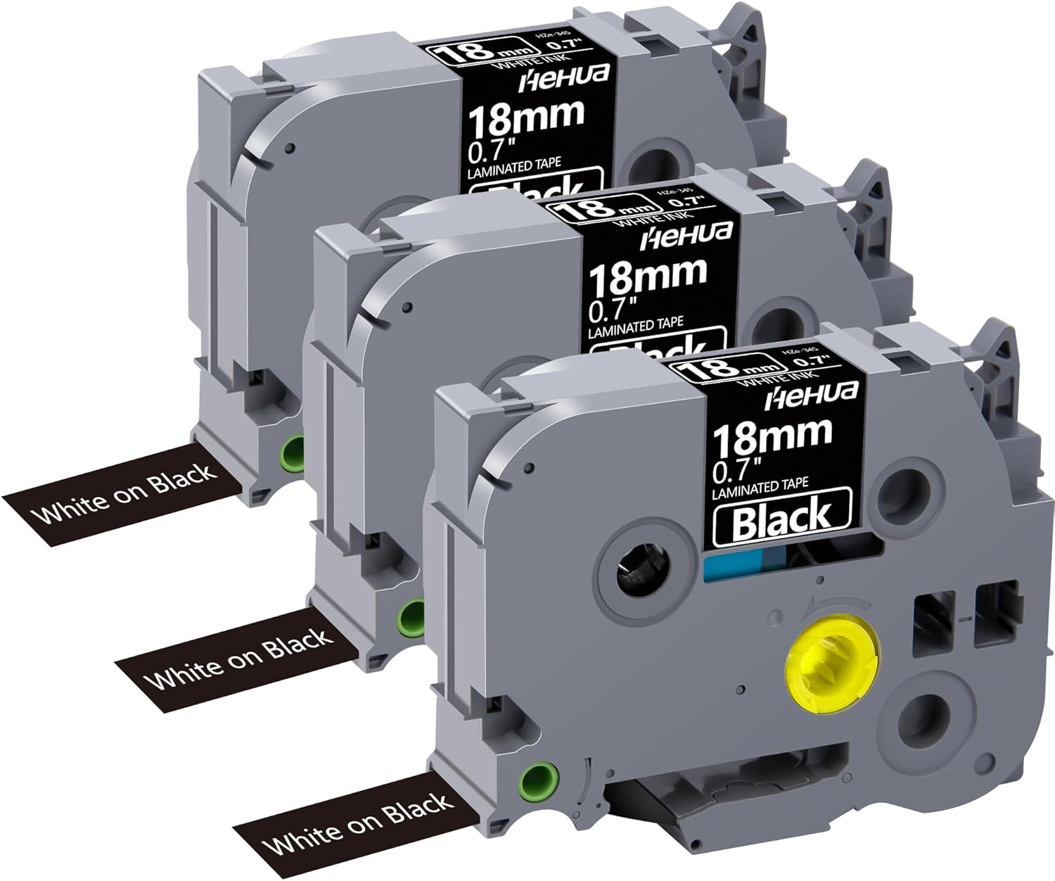 Hehua Tze Tz 18mm 0.7 Laminated Black Tape Compatible for Brother P-Touch TZe-345 TZe345 TZ-345 TZ345 Label for Ptouch PT D400 D600 D610 P710bt, 3/4'' x 26.2ft White on Black, 3 Pack